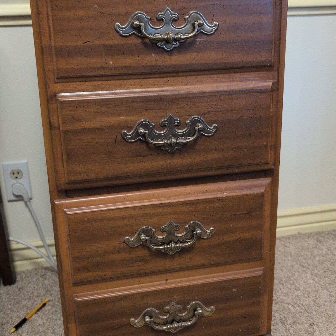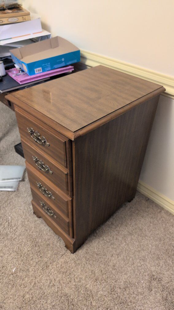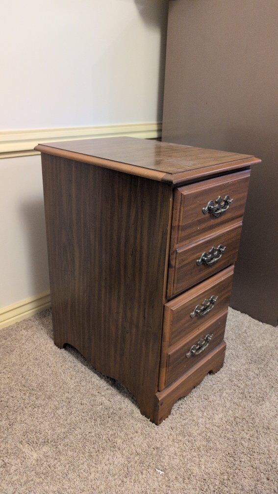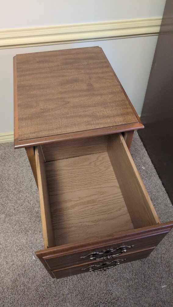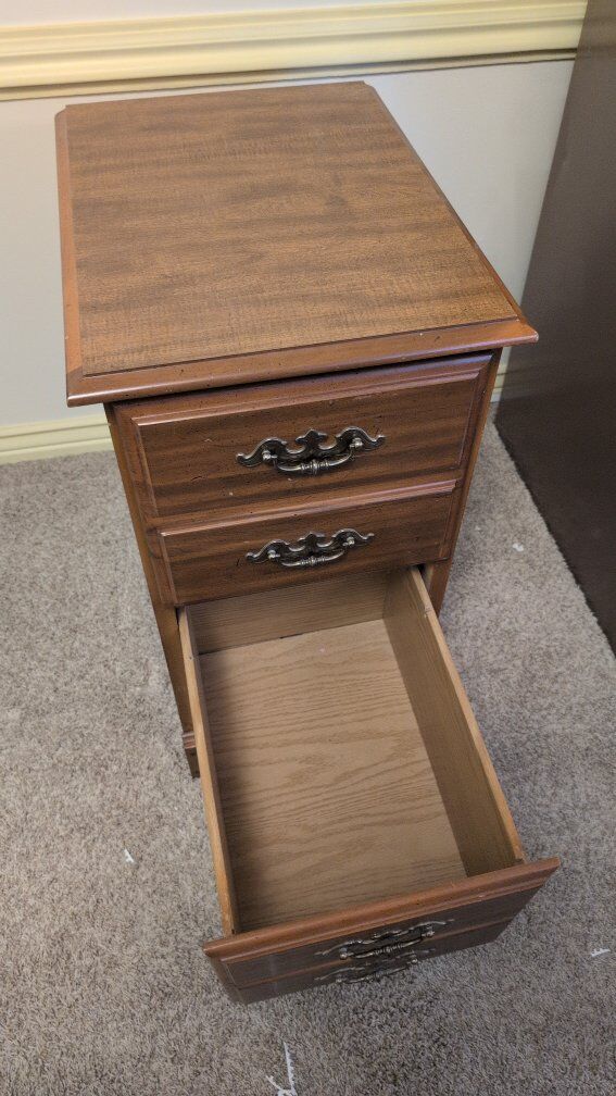 VenmoTwo drawer wooden filing cabinet. Could also used as a nightstand. Dimensions 16 1/2" wide 22" deep 30 1/2" tall