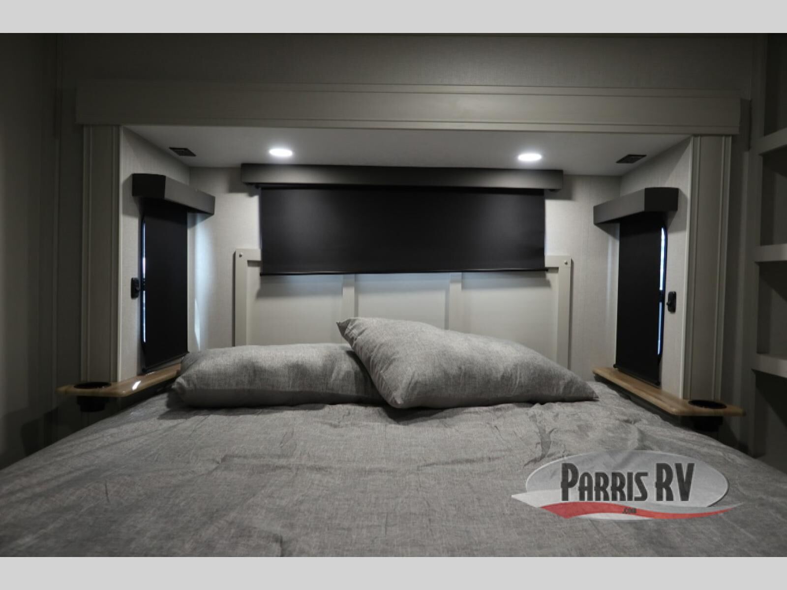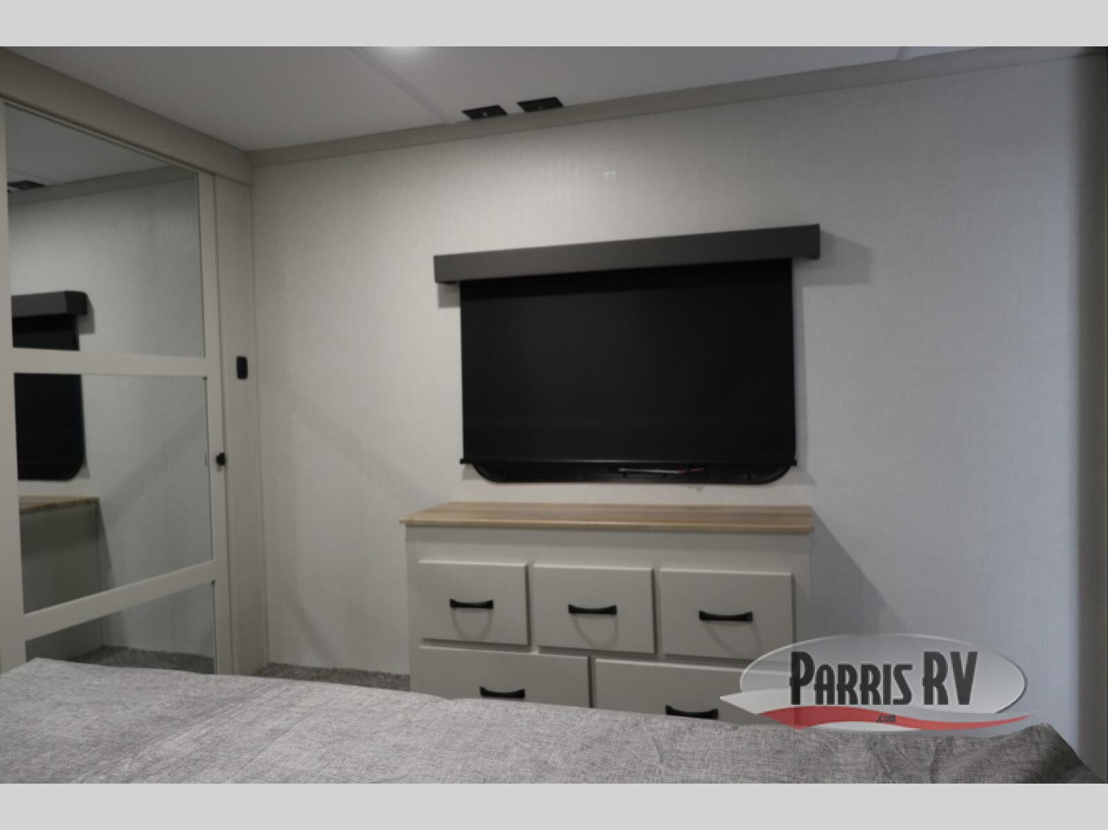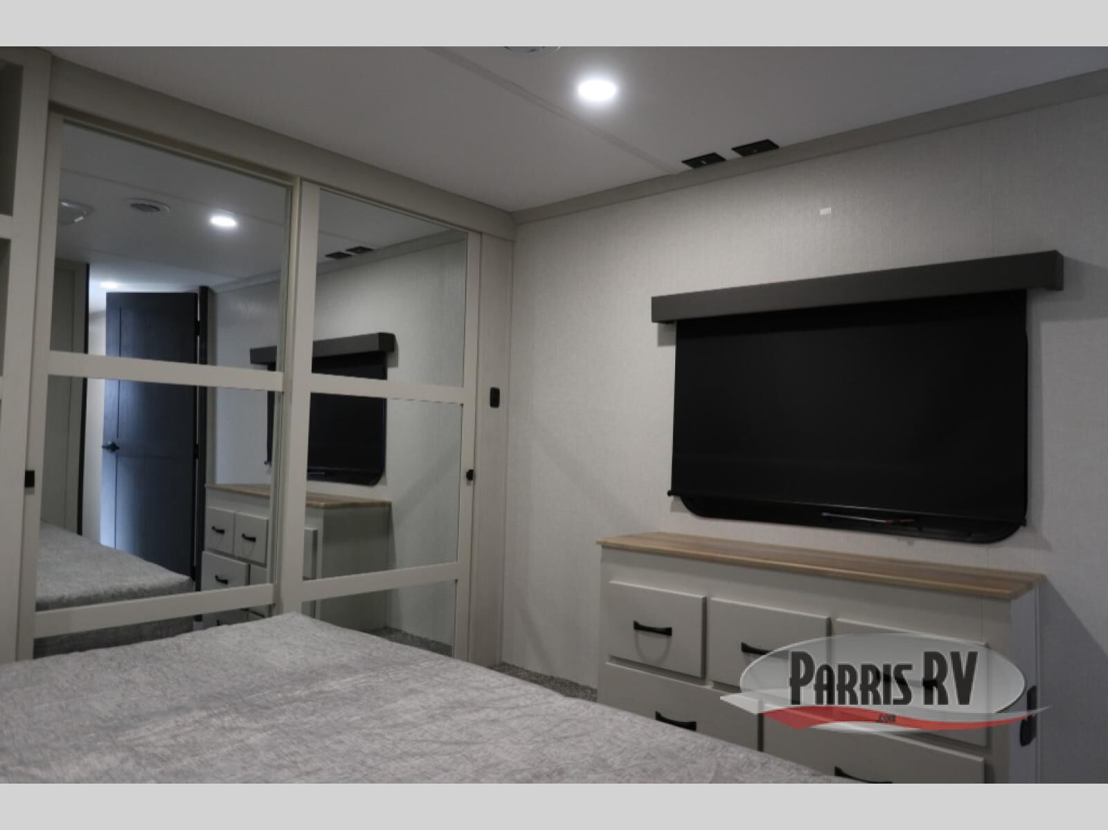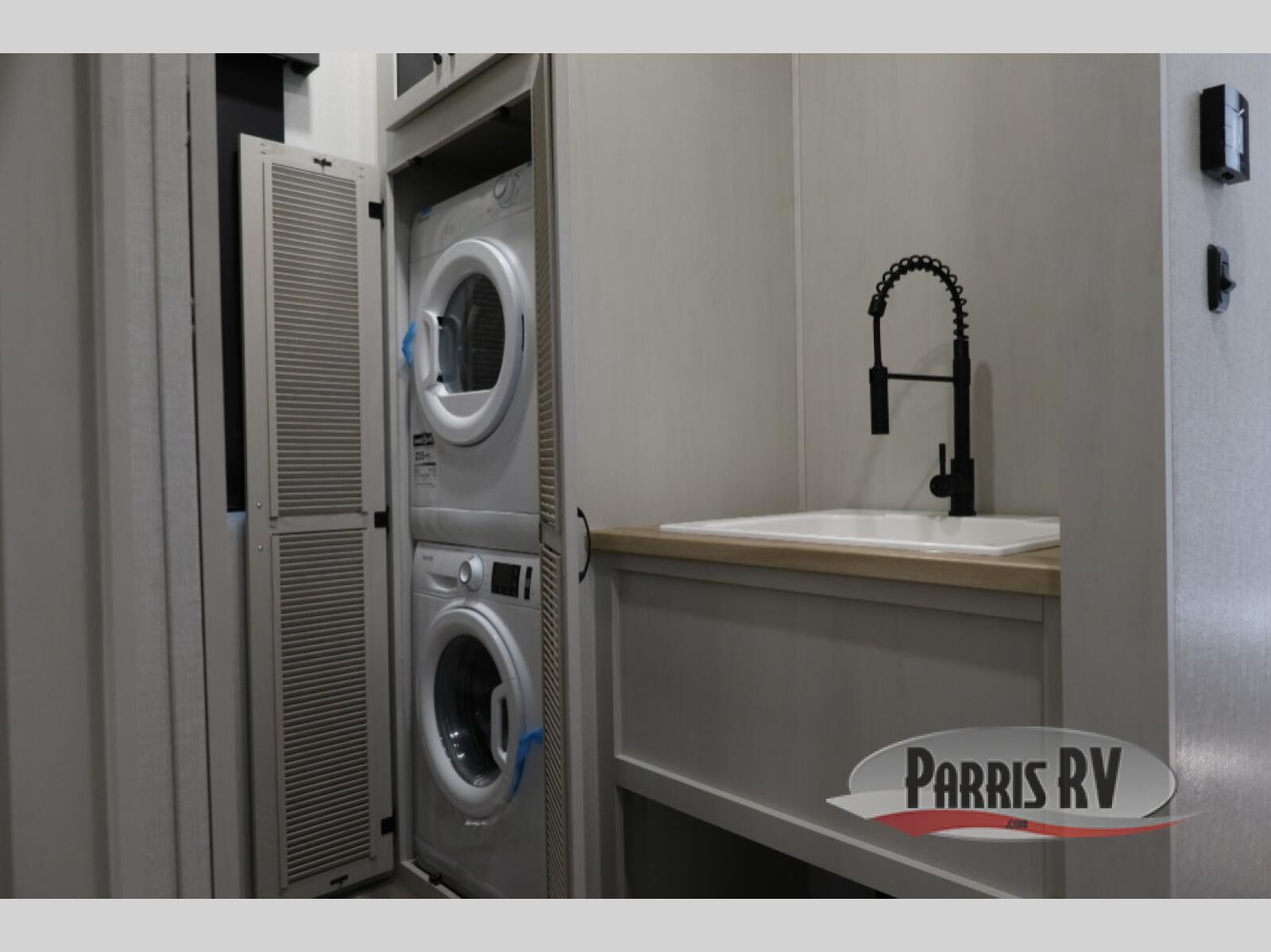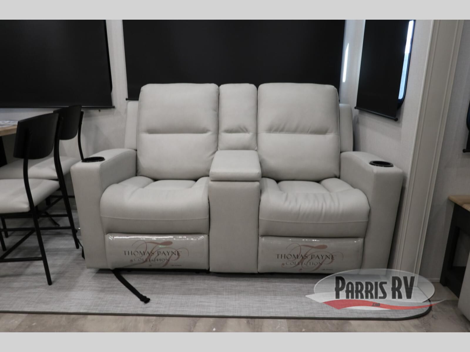 The rear living room is the perfect place to unwind, featuring a 78" trifold sofa, theater seating, overhead cabinets, and an entertainment center. Whether you're watching a movie, reading a book, or simply enjoying the company of loved ones, this room has everything you need to relax and recharge. The spacious kitchen is fitted with a kitchen island, refrigerator, microwave, free-standing table, hutch, and overhead cabinets. Perfect for preparing your favorite meals and enjoy with family. With a convenient coat bench, desk with flip-up storage, washer, and dryer, you'll have everything you need to stay organized and comfortable on the go. The full bathroom is an enormous oasis with a linen closet for added convenience. Also with a front bedroom featuring a king bed, dresser, shelves, and wardrobe, you'll have the perfect place to rest and recharge after a long day of adventure, also plenty of space for storing all your belongings and staying organized on the road.