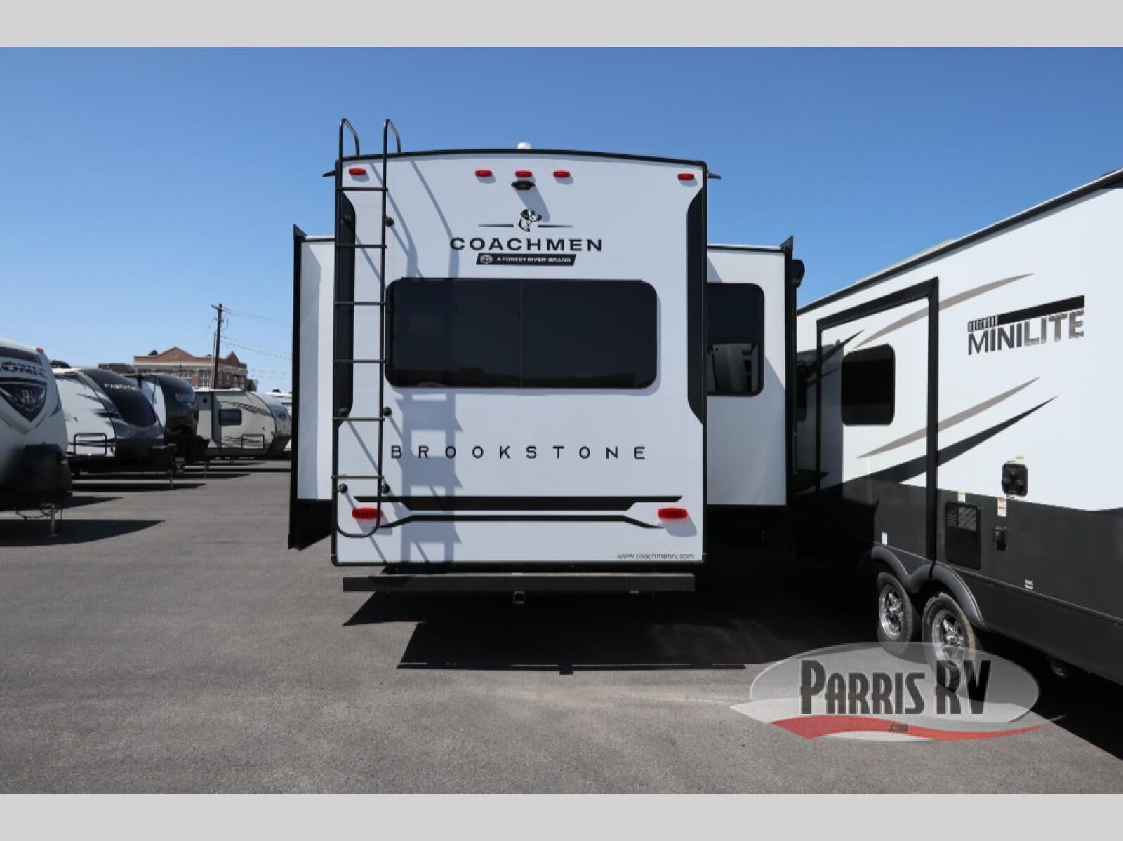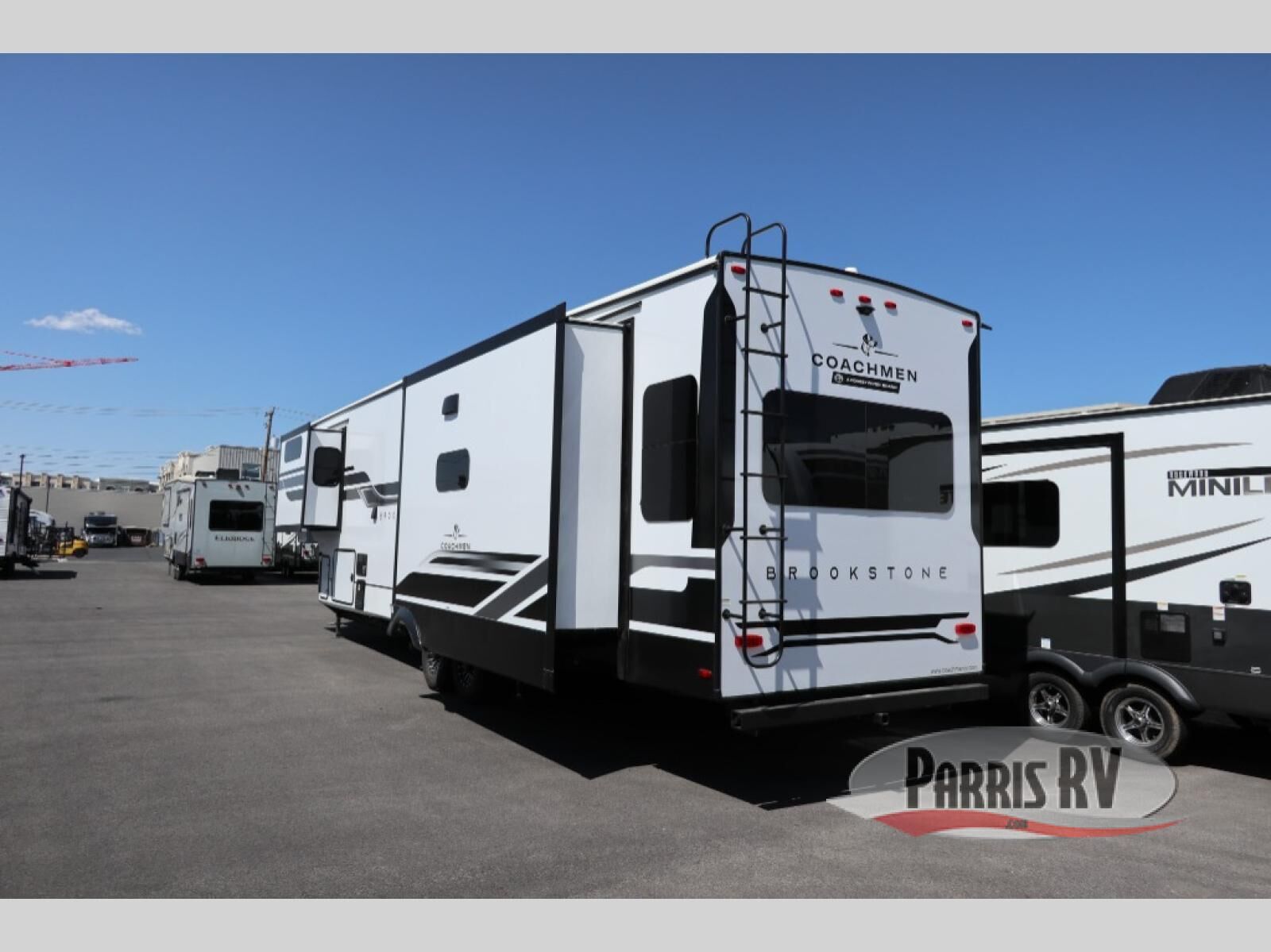 The Brookstone fifth wheels by Coachmen are coming to you with wide-body comfort, home-like amenities, and unique designs for a truly luxurious RV. The Weather Shield+ consists of a 6X double Azdel aluminum cage sidewall system, a Radiant Pro weather barrier system, and more that will help you extend your camping season or go full-time. Head inside to find solid surface countertops in the kitchen, an 4K Smart LED TV in the living room, slow rise roller night shades, and the list of comforts goes on! The Brookstone also includes 6-point electric auto-leveling, four Solid Step entry steps, an electric awning with LED lights, and many more exterior conveniences!
