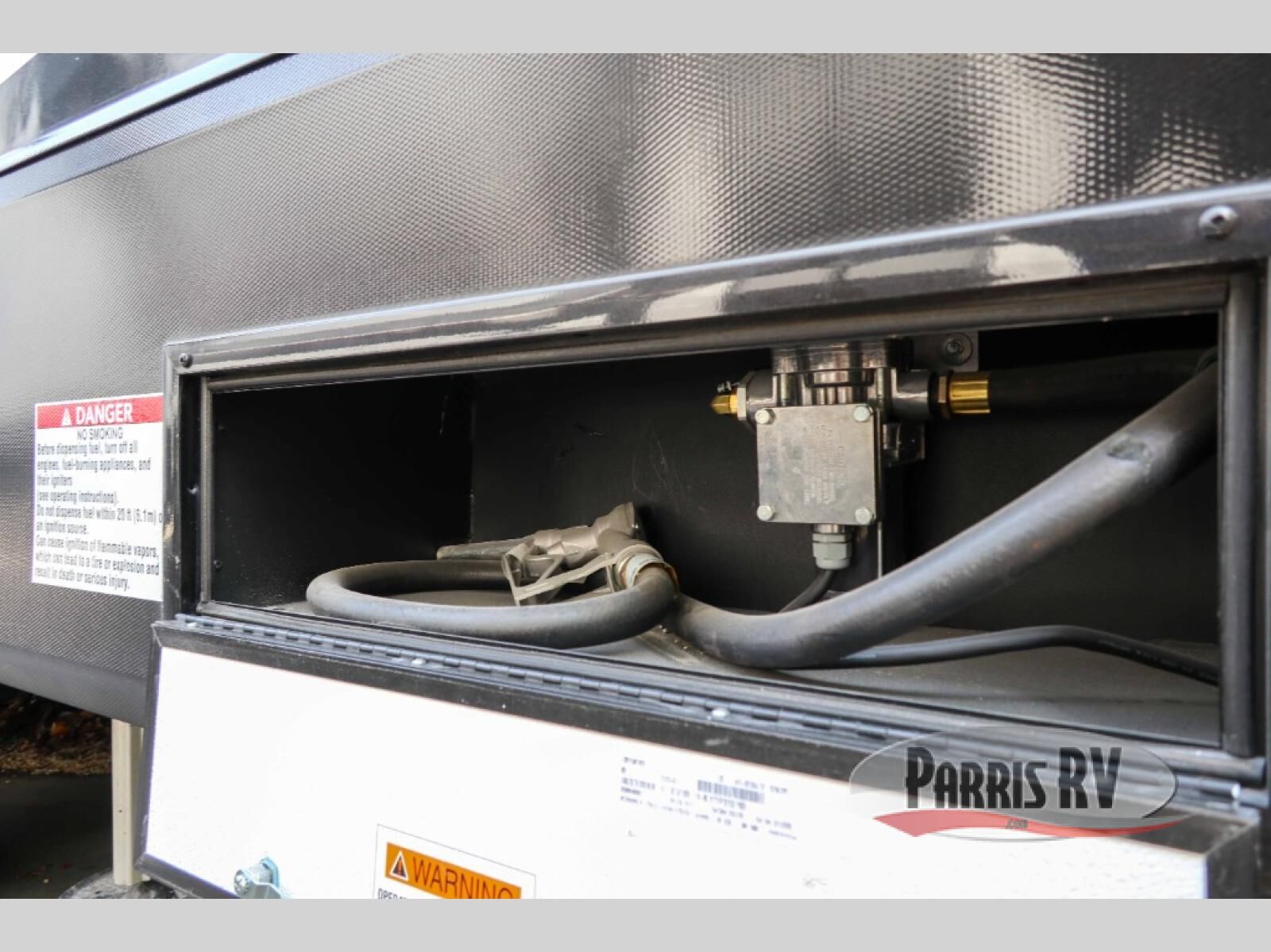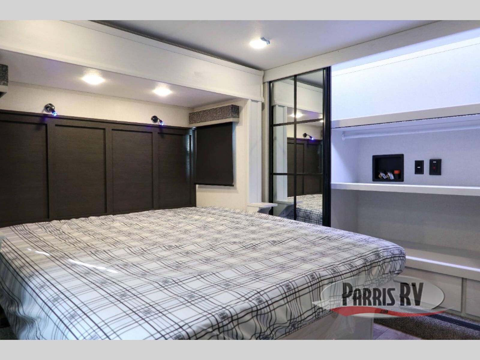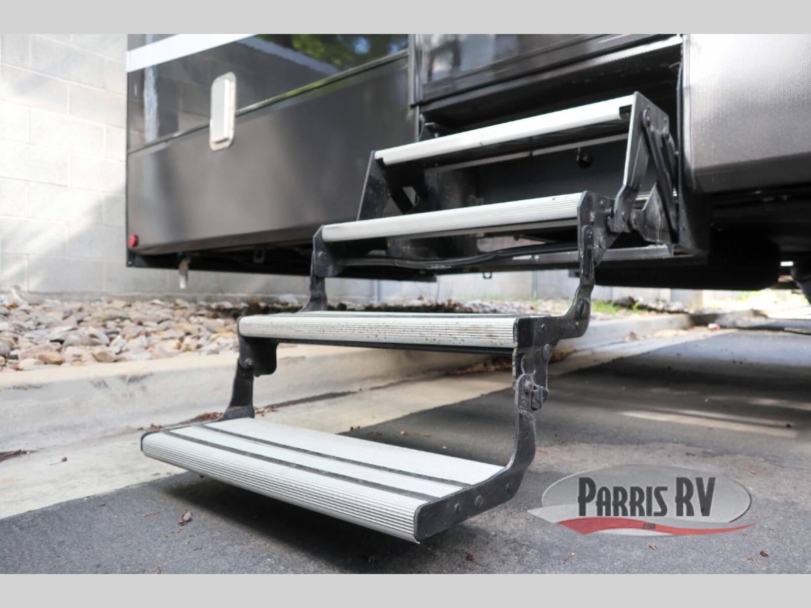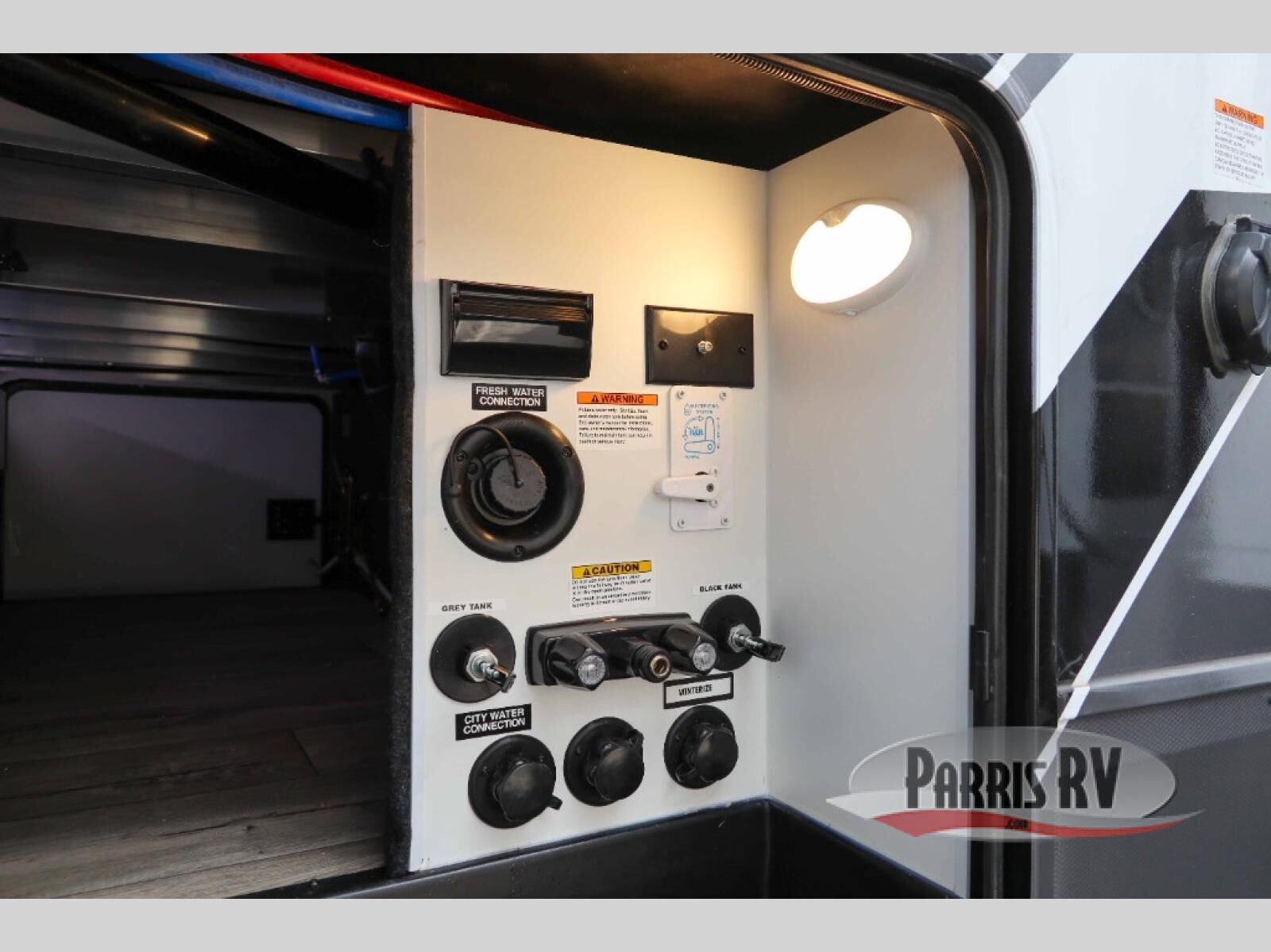 The Dutchmen Voltage toy hauler is an amazing RV that won't disappoint! These elegant units have more durability and luxury than you ever thought possible. They include an All Weather Package, 16" custom wheels, MorRyde CRE 3000 suspension, and a second fuel tank for a total of 60 gallons. There is a second power awning over the garage entry door, and you will even find a third awning above the ramp patio. The tinted frameless windows will protect you from outside prying eyes and harsh sunlight, and the interior solid-surface countertops in the kitchen will withstand many years of chopping and dicing. You'll also have a 12" diamond plate in the garage for protection, and there is an on-demand tankless water heater for hot showers after trail riding!