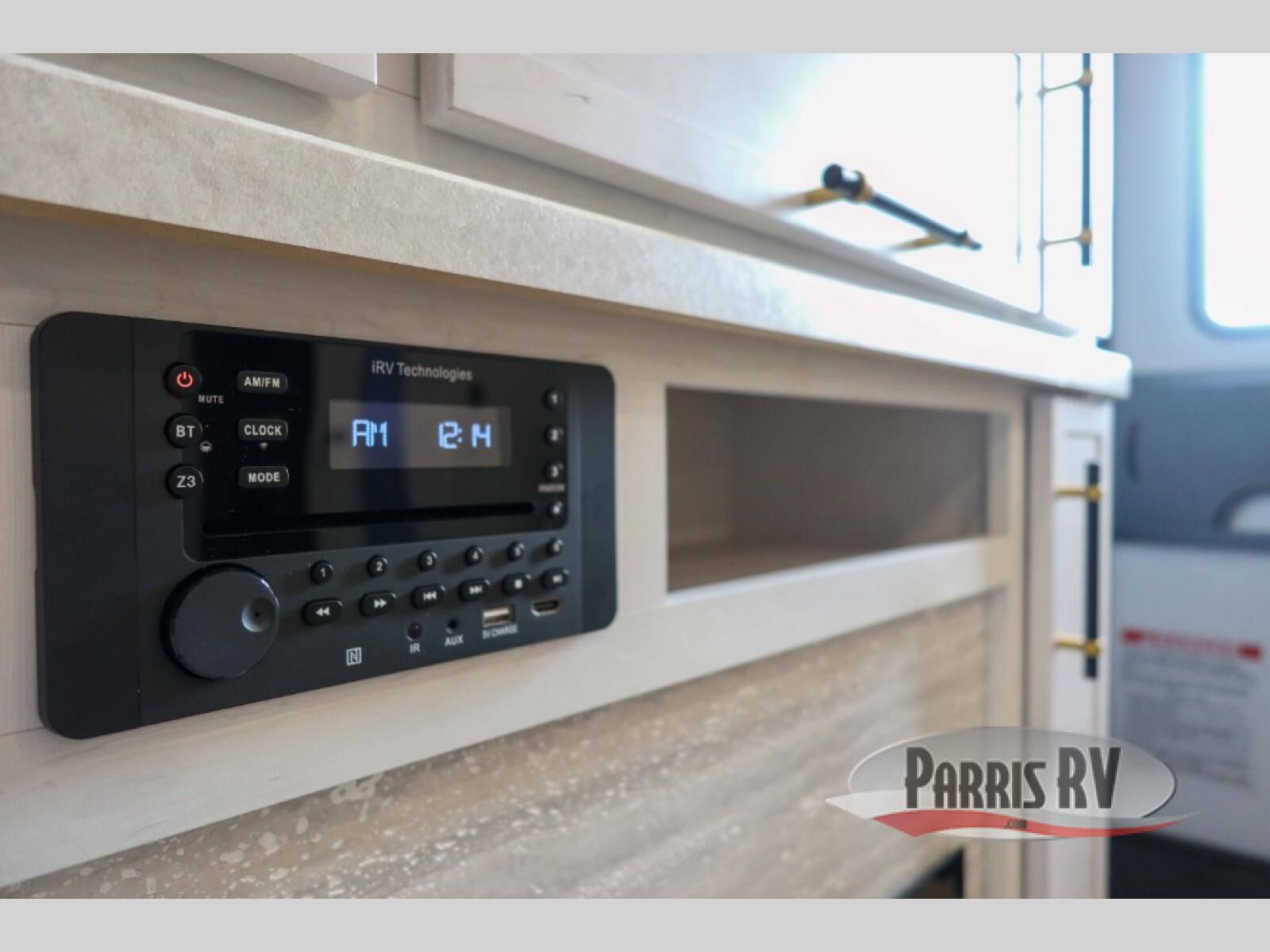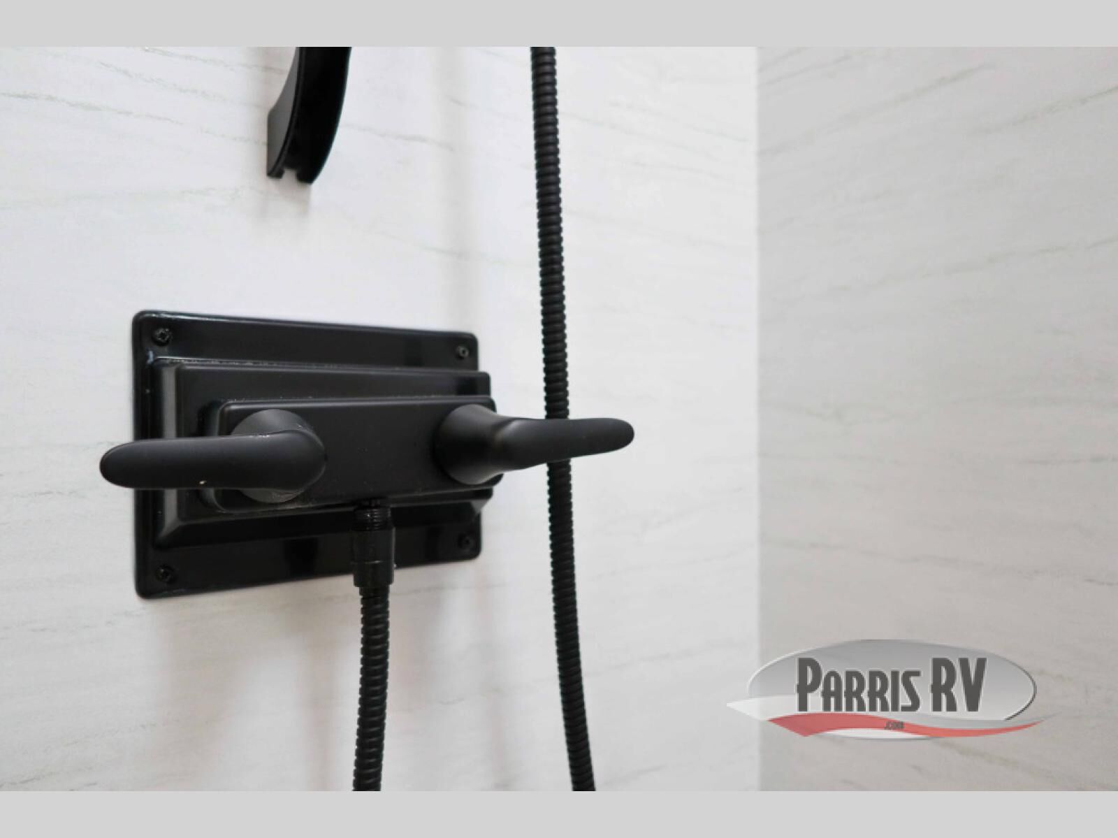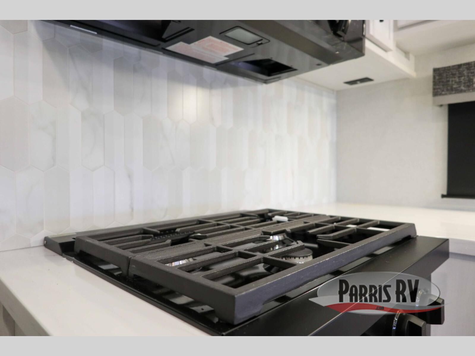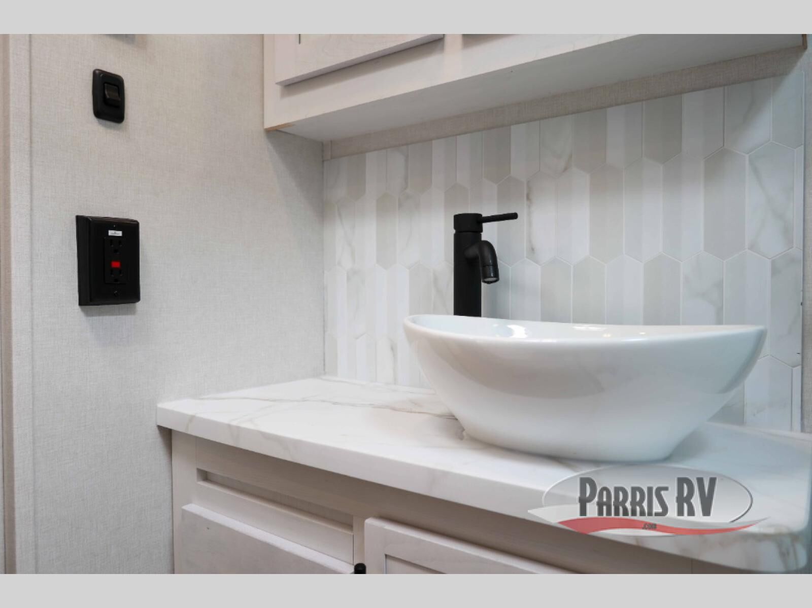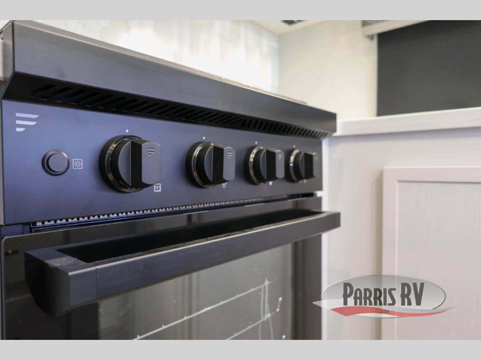 The Dutchmen Voltage toy hauler is an amazing RV that won't disappoint! These elegant units have more durability and luxury than you ever thought possible. They include an All Weather Package, 16" custom wheels, MorRyde CRE 3000 suspension, and a second fuel tank for a total of 60 gallons. There is a second power awning over the garage entry door, and you will even find a third awning above the ramp patio. The tinted frameless windows will protect you from outside prying eyes and harsh sunlight, and the interior solid-surface countertops in the kitchen will withstand many years of chopping and dicing. You'll also have a 12" diamond plate in the garage for protection, and there is an on-demand tankless water heater for hot showers after trail riding!
