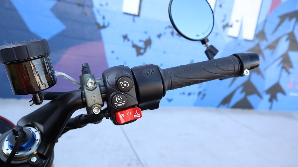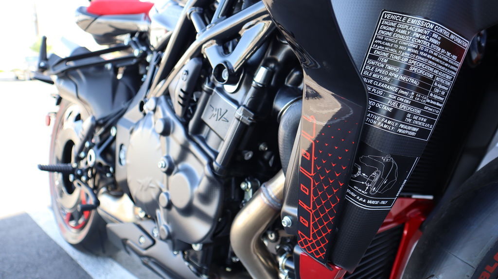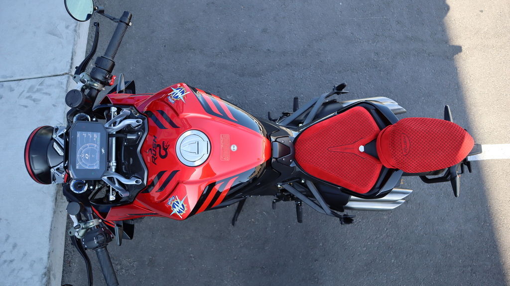 8-level traction control, anti-wheelie, launch control, cruise control, cornering ABS, and a quickshifter (EAS 2.1 up/down) come standard, managed via a 5.5" TFT screen with Bluetooth and MV Ride App integration.