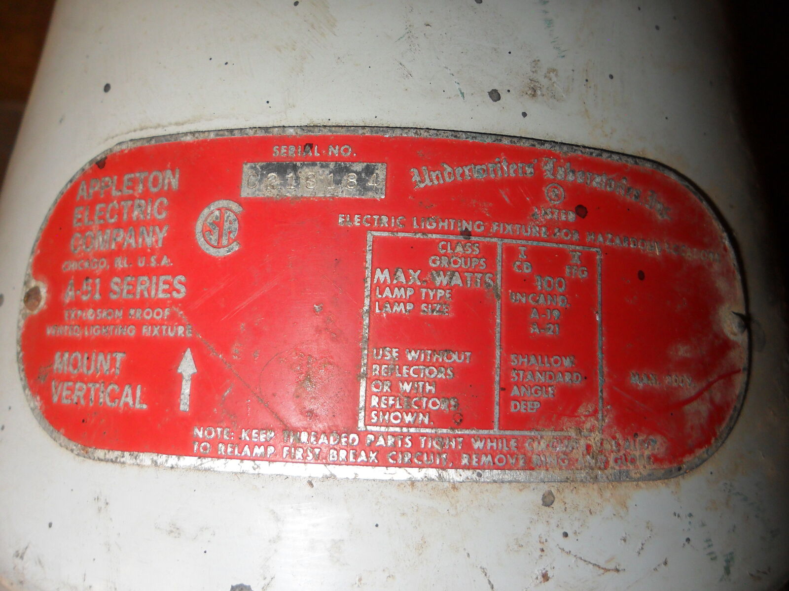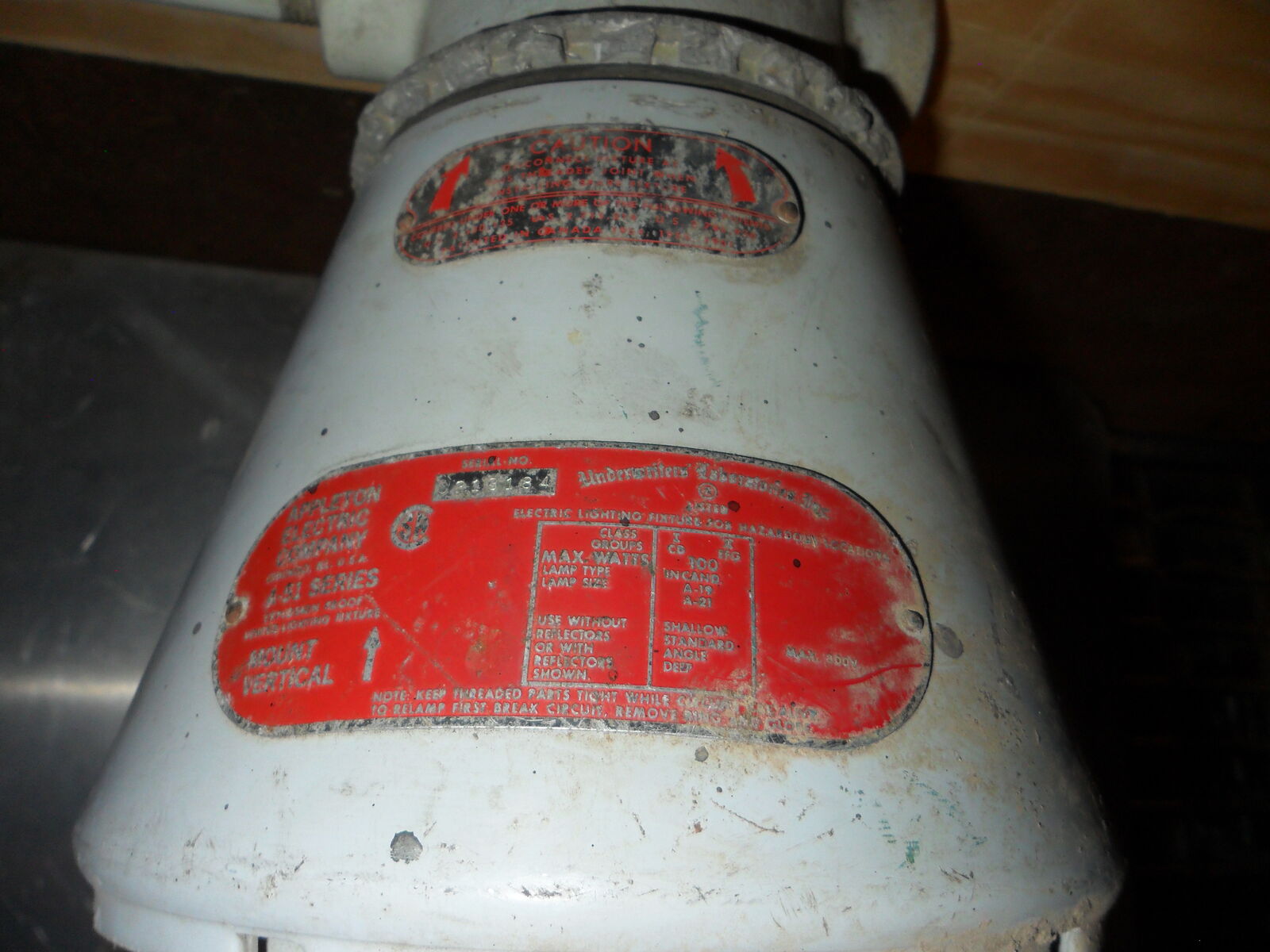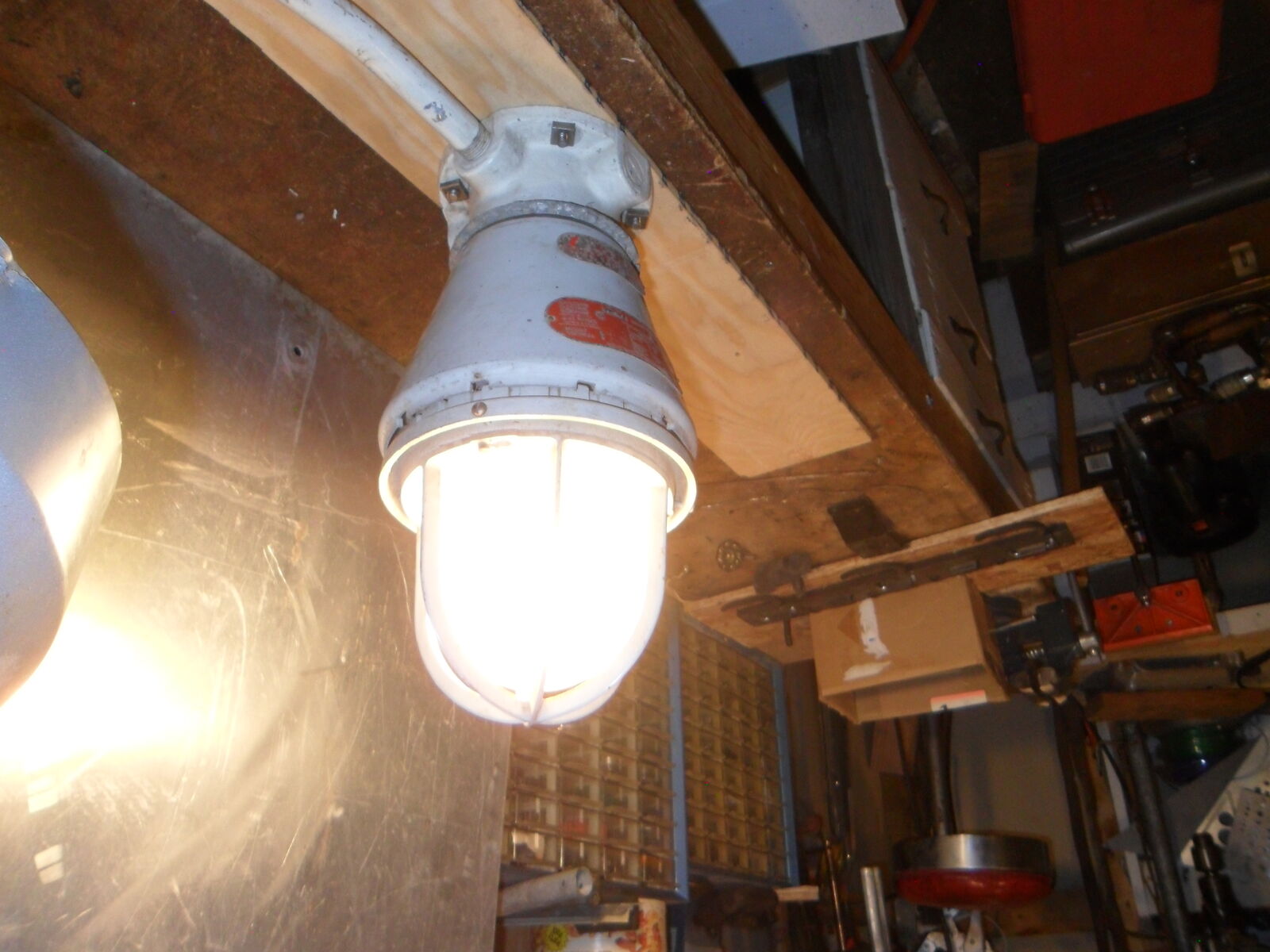 This old industrial light measures about 14"x7" and is in working condition . Right now it has a 130 watt bulb in it that can be changed to any standard bulb wattage you want. Leave it bright or turn it into a colored mood light. It will make a great industrial or steam punk addition to home or shop. Offers considered. Thanks for looking.