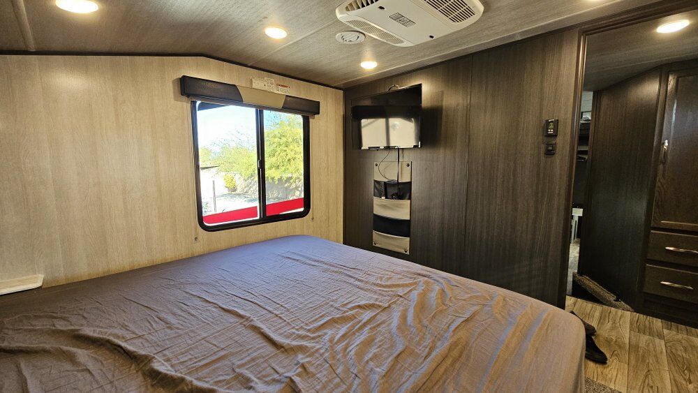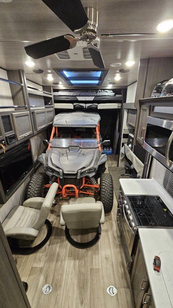 2023 Genesis Supreme 33 CKXL toy hauler 5th wheel fifth wheel used only a few times like new with absolutely no wear on it 17 ft garage will fit any four seater side by side stay completely off the grid 175 gallon freshwater tank 100 gallon gray tank 50 gallon black tank Onan auto start smart Generator 5500 2 air conditioner 2 slide outs Heavy duty tires 600 amp lithium batteries with shunt battery monitoring system that tells you exactly how much battery you have left now 800 w solar Heavy duty tires New king size mattress in the bedroom $67500 OBO Diesel heater for a efficient Heating Max vent fan and vent covers and much much more best fifth wheel Call or text only phone number 702 88five7 449
