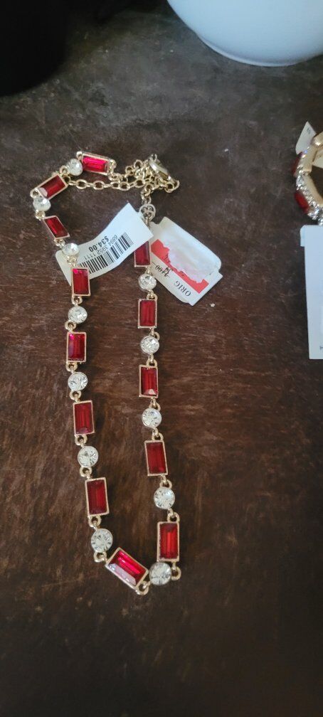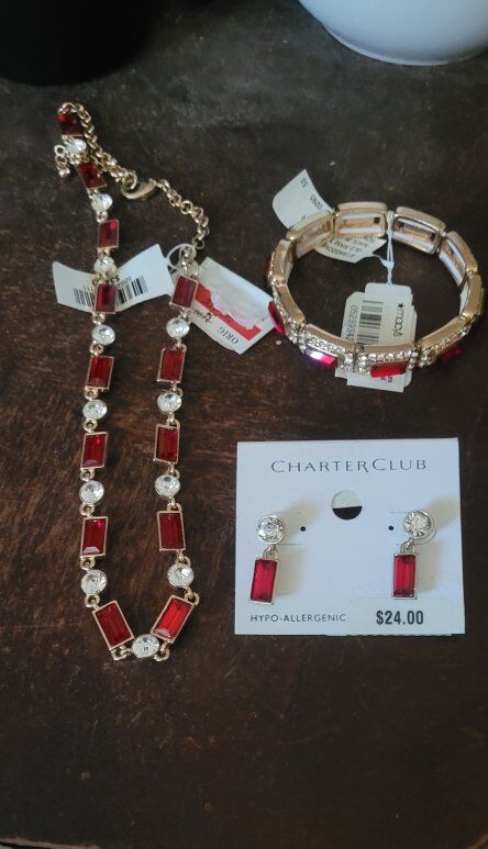 3 piece red jewelery set from Macy's. New with tags. includes necklace ,bracelet, and earrings. All are new with tags. Was $20 cash noe $10.pickup in Ogden, Utah please contact thru Ksl messenger.