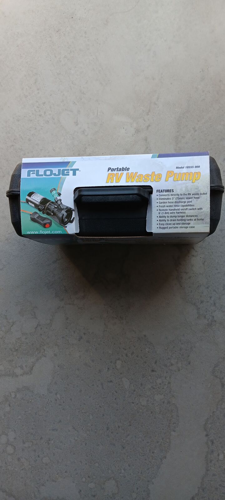 New, still in box. 12v Flojet M#1 8555 000 portable RV Waste Pump.