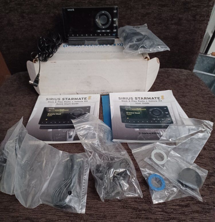 SiriusXM Satellite Radio Starmate 8 Dock and play Radio Reconditioned Plastic is still on face and dock of radio. All but one cable is still sealed in plastic. FCFS Cash accepted.