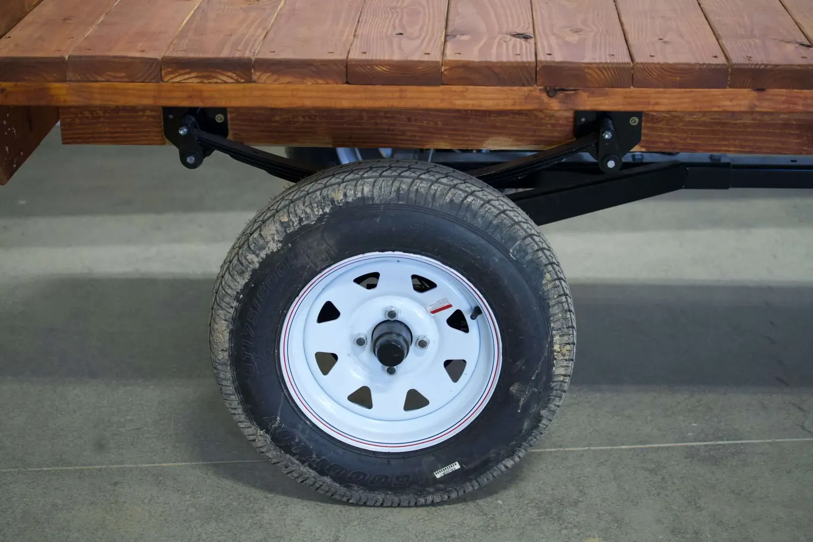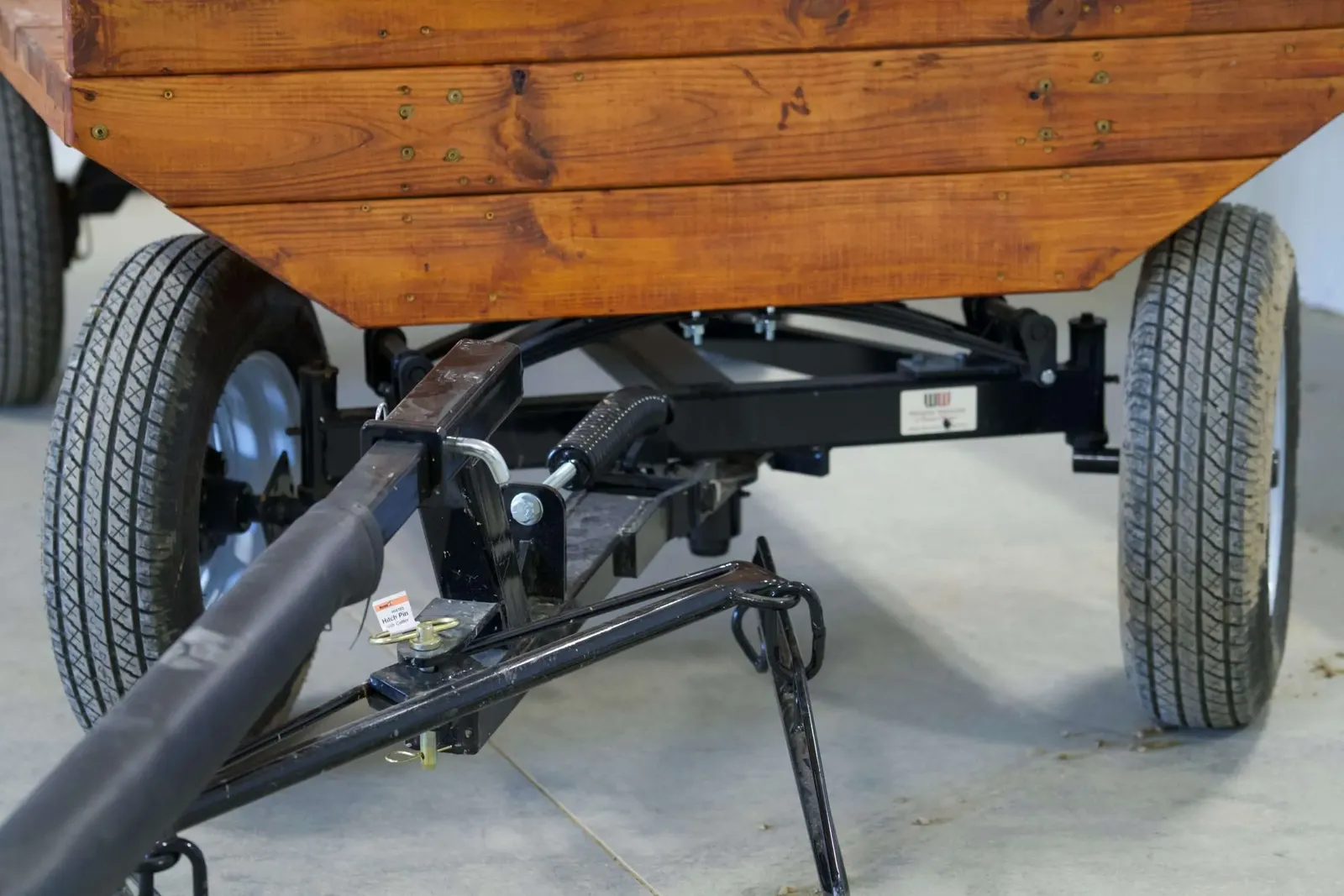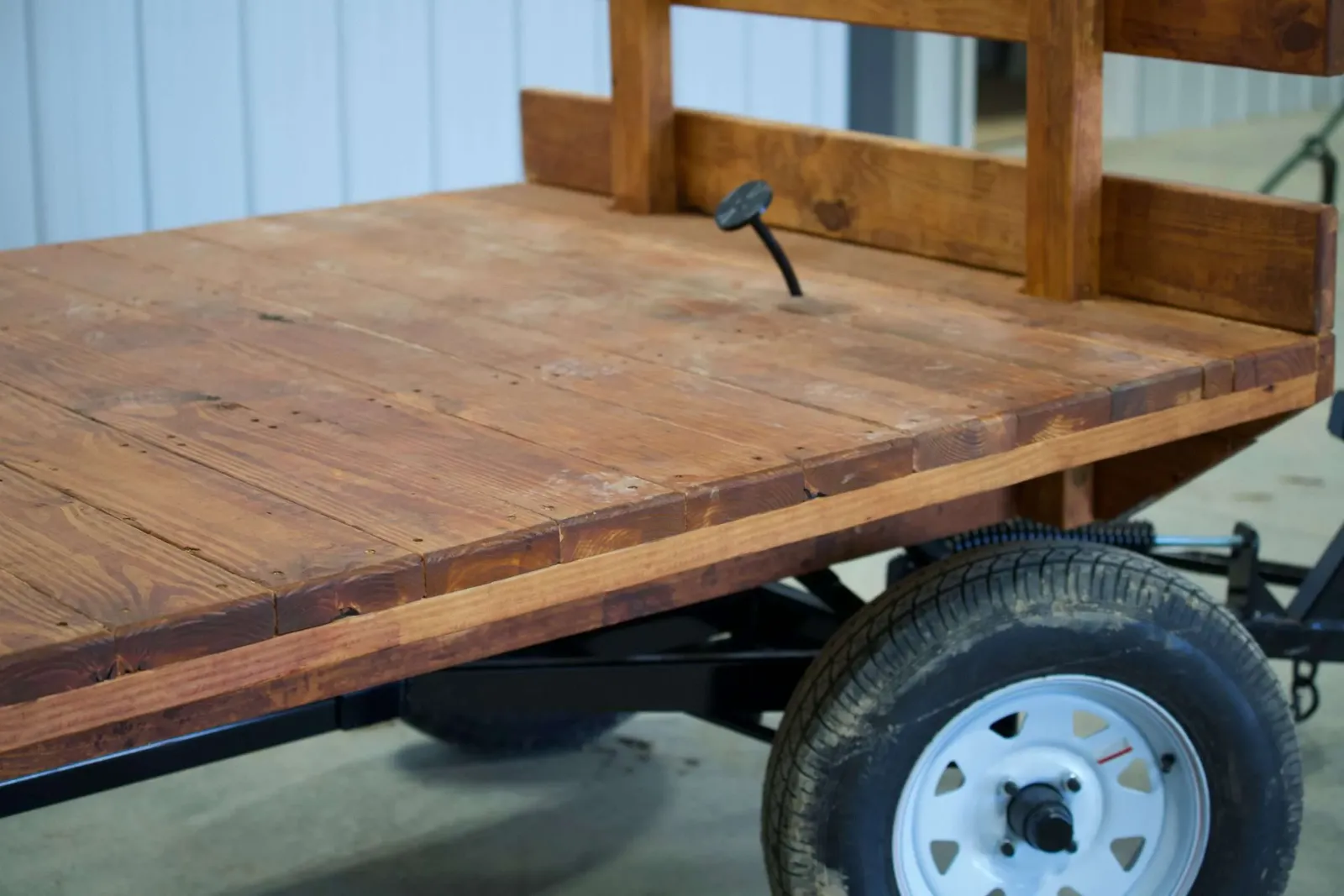 For Sale: Versatile Horse-Drawn Utility Wagon Description: Discover the perfect horse-drawn utility wagon for all your hauling needs! This beautifully crafted wagon features a custom-built bed made from high-quality pine lumber, enhanced with a cherry finish that not only looks stunning but also seals the wood for long-lasting durability. It is built on the Weaver Wagon 3800 gear. FEATURES & BENEFITS