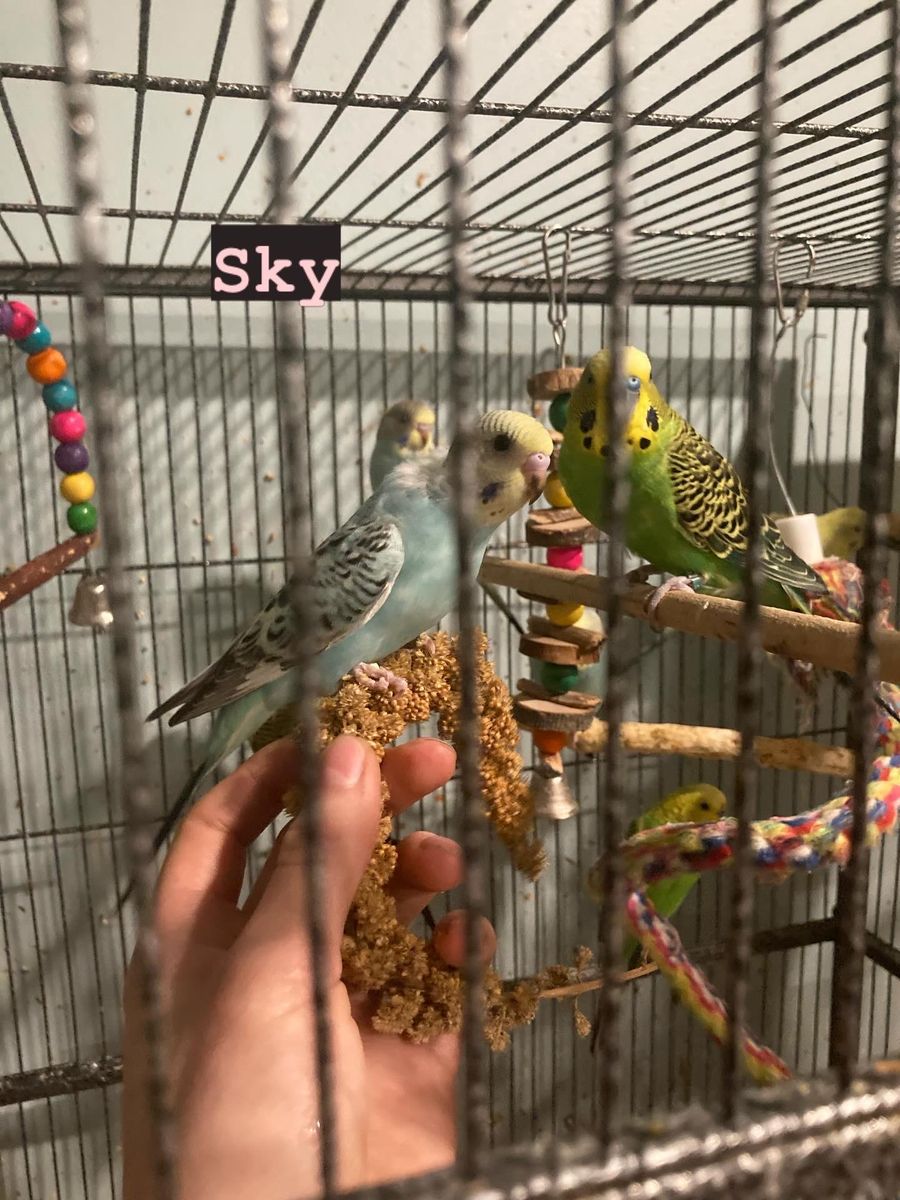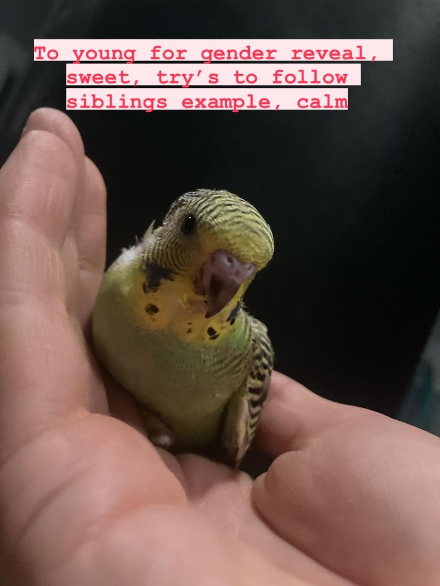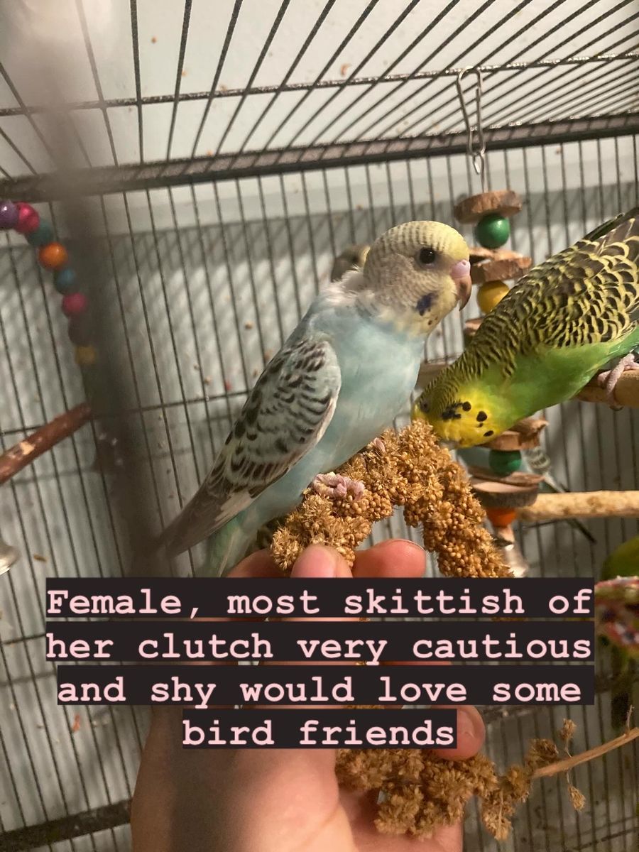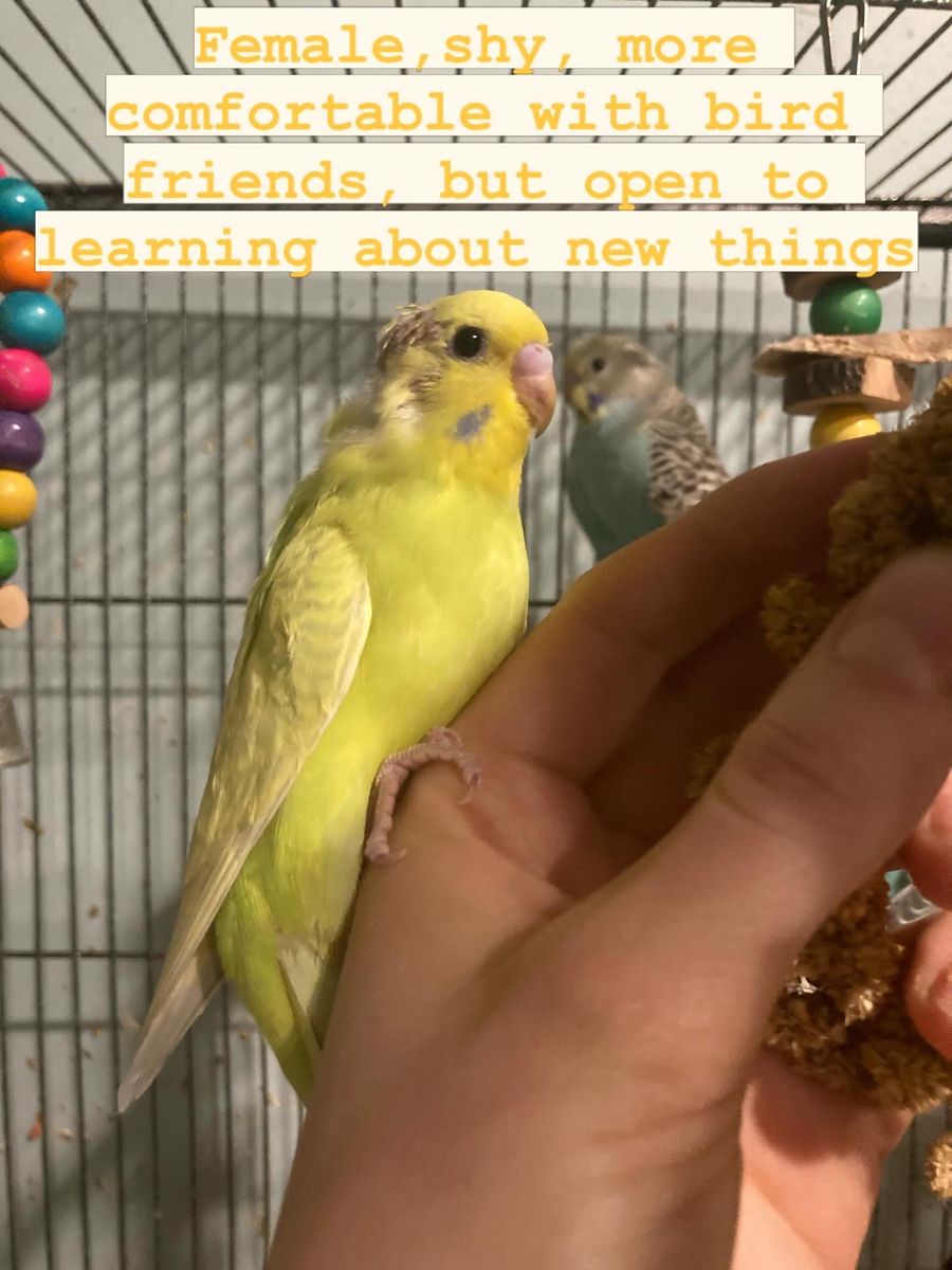 Check out the pictures to see more ! Reach out to reserve a chick! 2 sisters go together for $70 otherwise see below or reach out for pricing. Some available to be hand fed (if you are an experienced breeder) for a discounted price $40 otherwise chicks when ready to leave that have outgoing personalities will be 45$ older chicks or very shy skittish chicks with be 35$ . One female ready to leave born last week of December. She’s more timid and would benefit from going to a family with another budgie35$ I have the parents and even some grandparents of these chicks they are from healthy lines no inbreeding! they are raised on a balanced pellet diet not seeds (except the occasional treat;) they will mostly be semi-tame though occasionally some are naturally more shy or more outgoing. Check out my instagram @yellowfacebudgies for regular updates and more pictures : )I also recommend reaching out through instagram I end up missing these messages often. I ask 35-45 depending on the chicks temperament and age