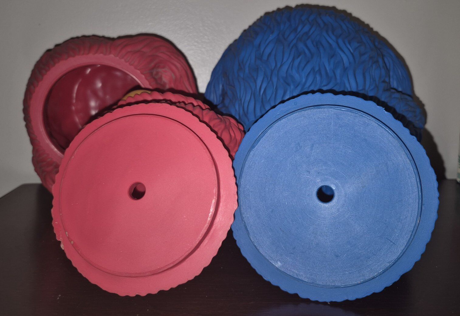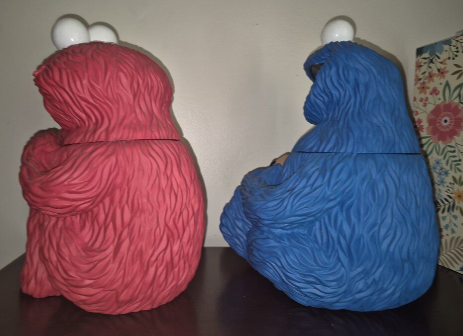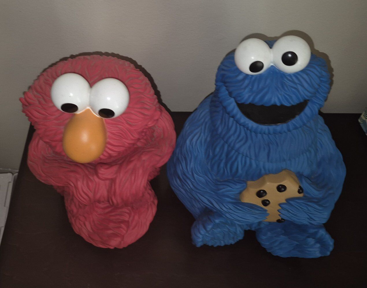 1997 Sesame Street Elmo Vinyl And Cookie Monster Jars 10"-11" tall 7" diameter approx. Jim Henson-Muppets-Applause Original Vintage Excellent condition!