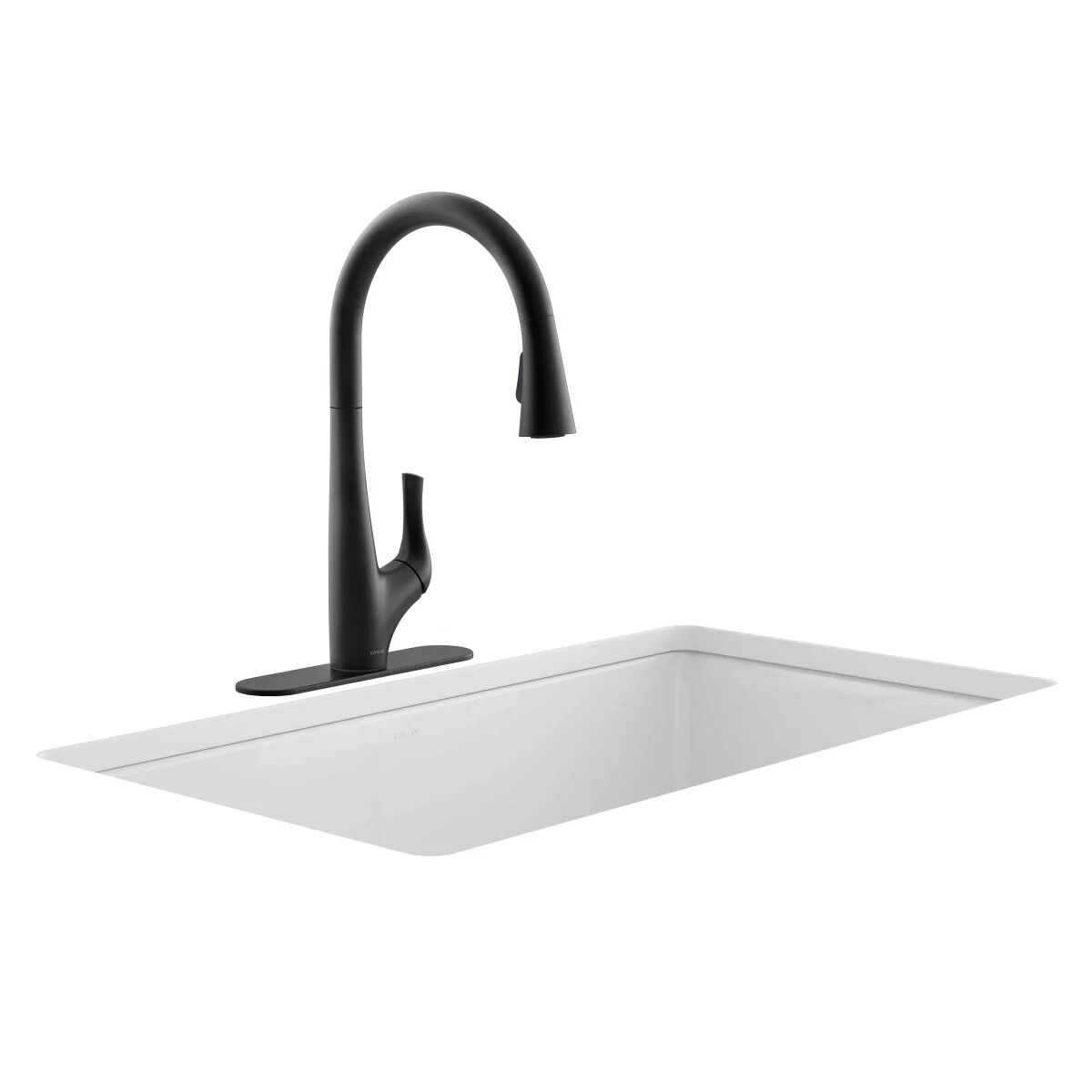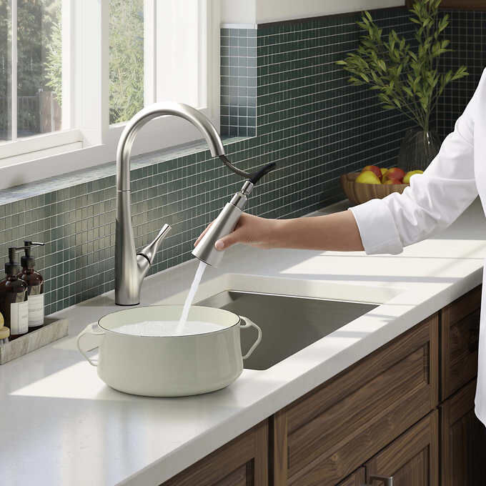 We have four of these Kohler Bevin Pull-Down Kitchen R43210-2MB Faucets #96229 available. This style of faucet comes in Stainless Steel 1727843, Matte Black 1773615, or Chrome 1773614, Colors available depends on what we have in stock at the time. These faucets come to us in various conditions from New to Used. They come in or out of boxes.