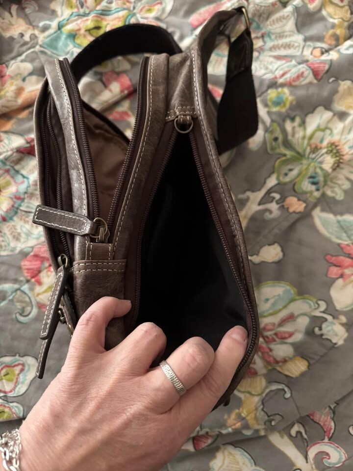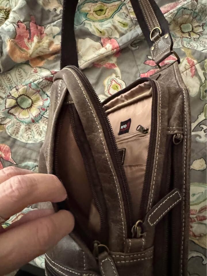 ApplePayNearly brand new CC bag. Buffalo leather. I used for about 2 months. The bag has 2 side pockets, 1 small front pocket, 1 large pocket with RDFI protected spot, and CC zipped pocket in back (accessible from either side). The back of pack has nice padding as well. Can sling from either side side. More details: