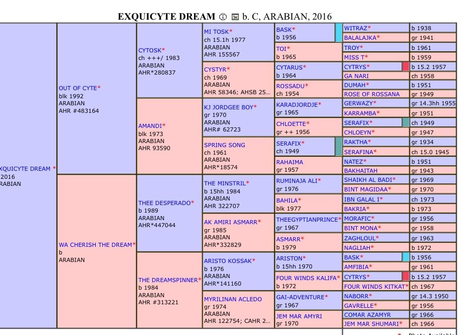 Sired by Out of Cyte x WA Cherish the Dream, who is sired by Thee Desperado and out of The Dreamspinner, who is the dam of Magic Dream cahr and EF Kingston. Carries lines to both Ferzon and Azraff, and is a Outcross - NO Padron, NO Marwan, NO Bey Shah, NO Huckleberry bey, and NO Ali Jamaal!