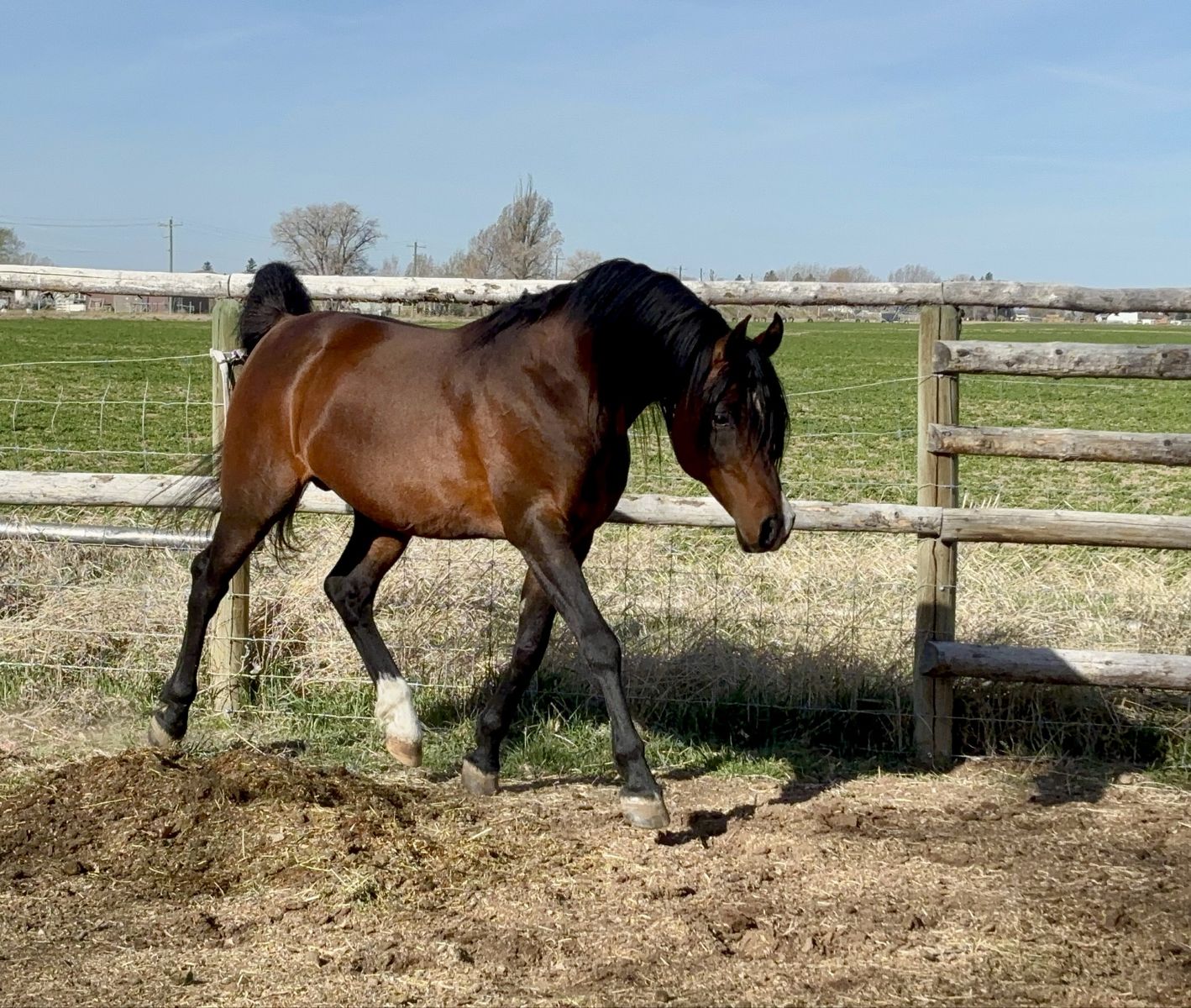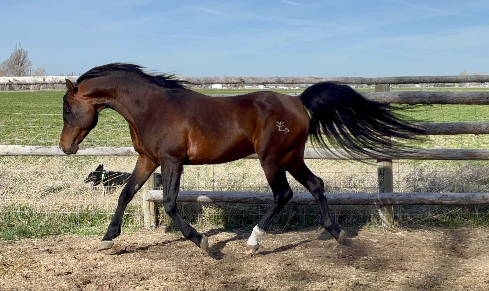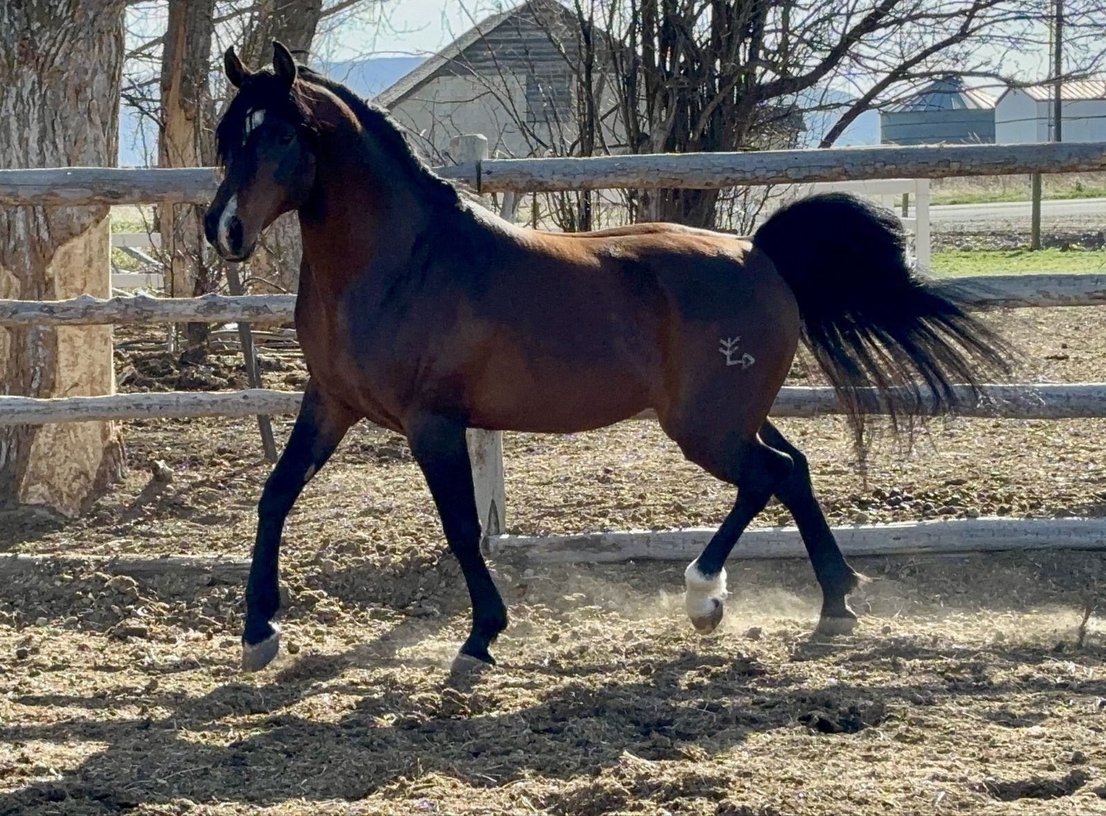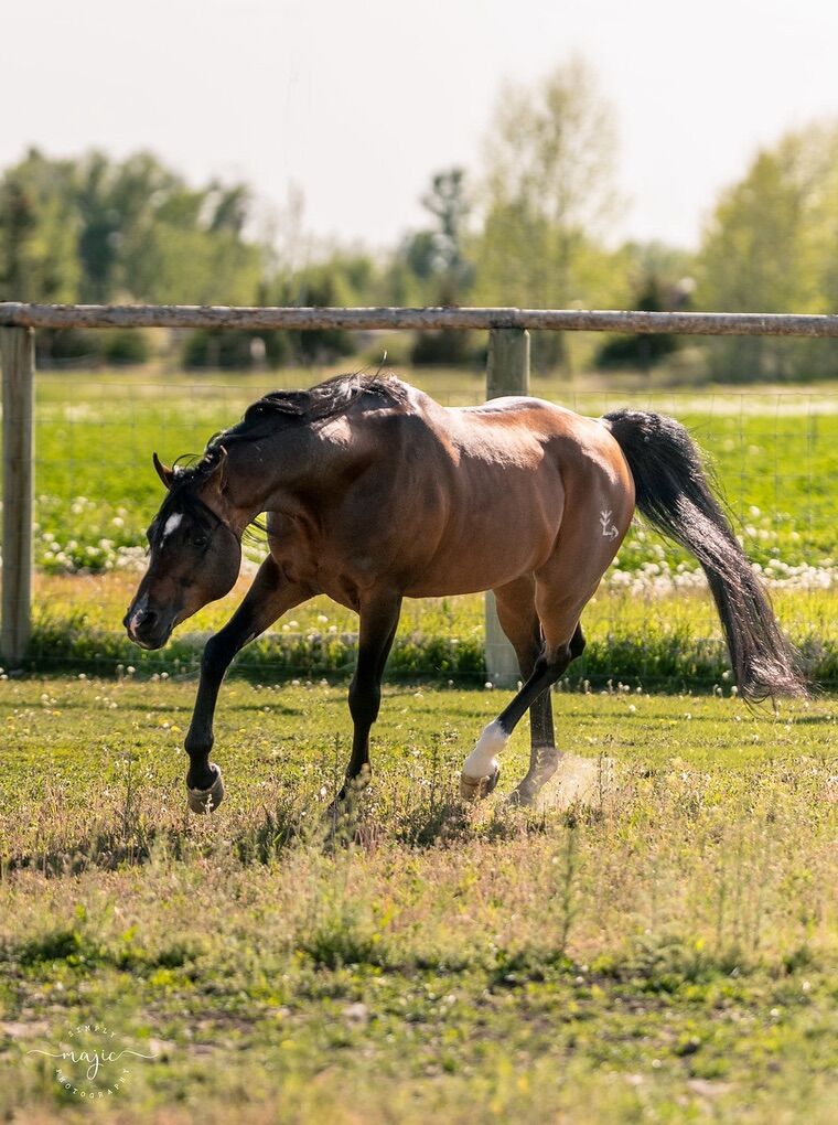 This stallion’s pedigree is stacked, and he is incredible. Long legs and gorgeous long swan neck with a typy wedged short head, beautiful eyes and very tippy ears. Perfect feet. He is flashy and showy, excellent tail carriage and incredible movement! Excellent reach and suspension at the trot, and a very balanced canter. Topping it all off with his amazing work ethic! This stallion loves to work as a team with his rider and to show off the Arabian breed! And now we are seeing him passing his gorgeous movement and amazing temperament into his progeny!