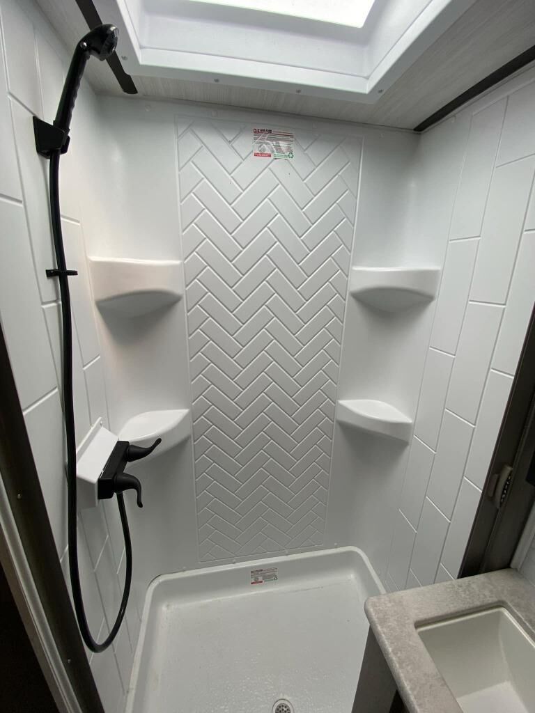 With any Surveyor Legend travel trailer by Forest River you will enjoy quality craftsmanship, convenient amenities, and at-home comforts. The Azdel composite panels provide a longer-lasting trailer, and the power tongue jack will get you back on the road in no-time. Each model includes the Surveyor Legend Package that comes standard with pleated night shades, an automotive style tinted front windshield, a multi-zone Bluetooth stereo, and more. You'll enjoy the one-touch electric awning with LED lights outdoors, plus rooftop solar prep and rear camera prep to make parking easier than ever. The inside will have you feeling right at home with Surf(x) seamless countertops, Congoleum designer carefree linoleum, residential faucets in the bath and kitchen, plus many more essentials you won't want to camp without.