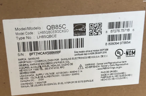 SIZE: 85"
