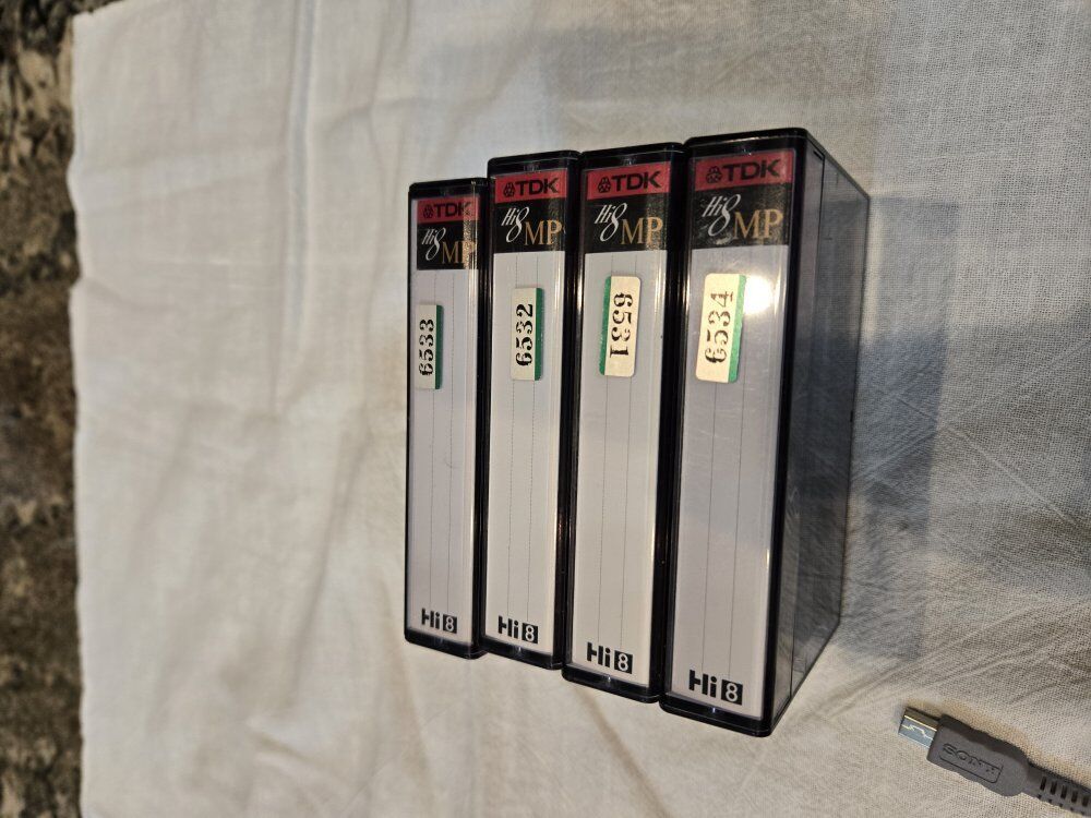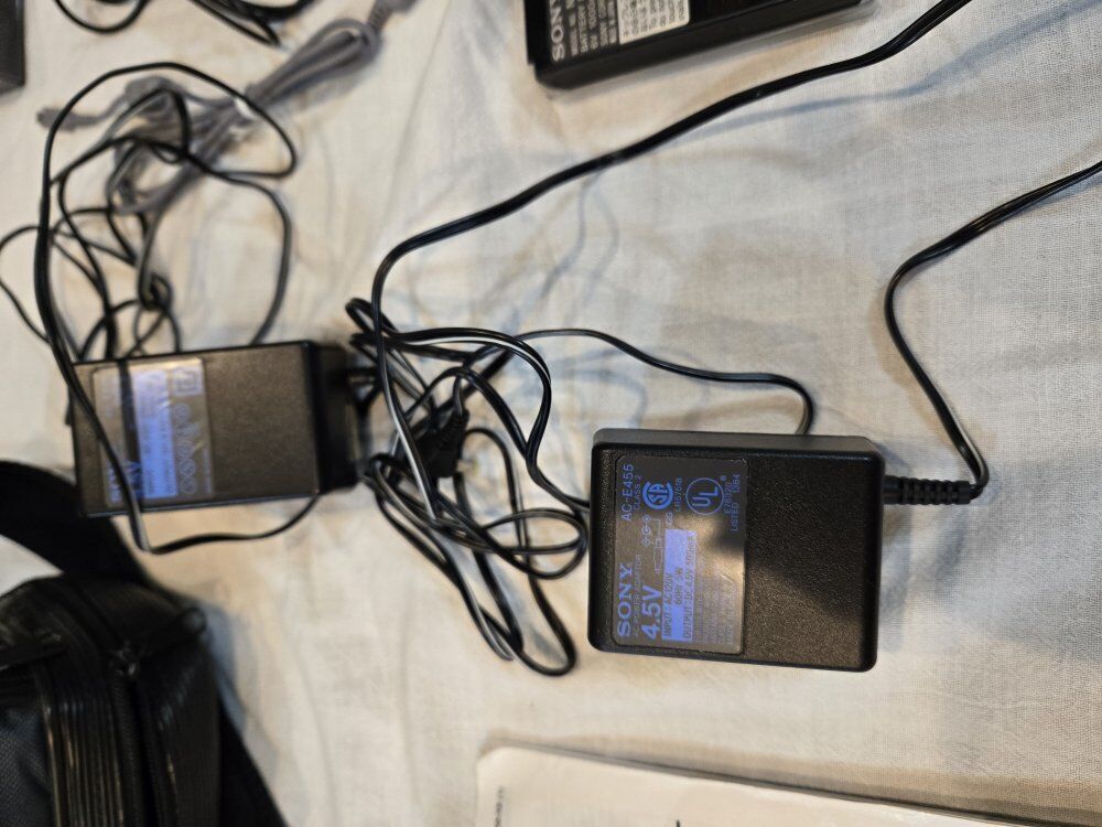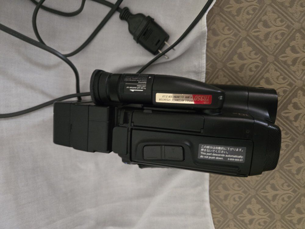 Sony video camera X AF/CCD TR-350 8 mm video camera recorder with rechargeable battery pack NP-80 and charger with instruction manual. Excellent videos and so easy to use. 10X. Uses TDK 8 mm video cassette film. I will include four Sony film cartridges. Includes the Sony Video camera operation manual, two Sony 4.5 battery packs AC-E455, two cords to attach to TV, Sony BFU-95UC adaptor, Sony Battery pack NP-55 (two), and grey Sony Carry case with zipper compartment, and pocket. I paid over $700 for it. In excellent condition.