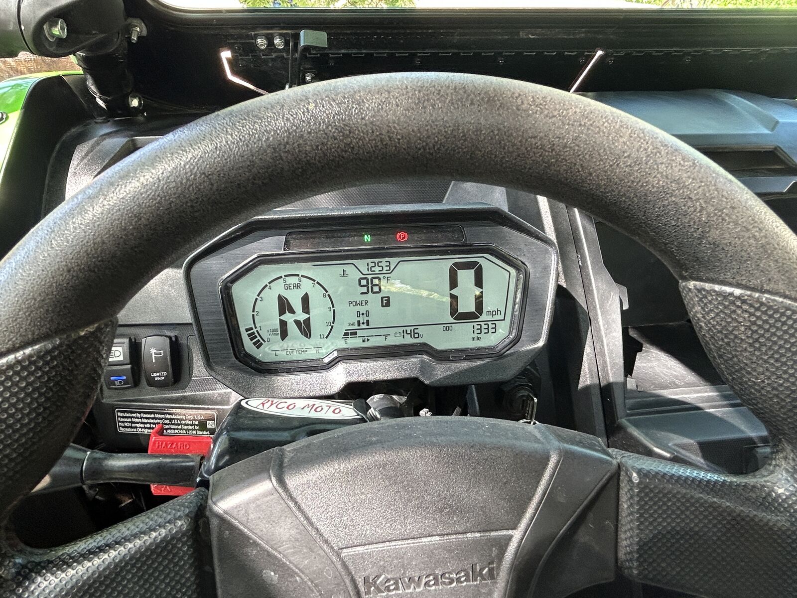 For Sale is a 2021 Kawasaki KRX 1000 with only 1,274 miles. It is street legal, has just been serviced and is in great condition. The included extras and upgrades are: RYCO street legal kit 35x10.00R15 tires on Muscle beadlock wheels Super ATV 1.5 forward offset high clearance A-Arms 1/2 full UHWM skid plate Warn 3500 lb winch Billet center fuel rail Rollover Vent Valve Front and rear bumpers Cargo box Front tow hook Rear receiver hitch Aluminum roof Dirt Warrior vented glass widshield Kawasaki rear window Sound and heat insulation in cab 6 Point Click 6 retractable seat belts Door and roof storage bags 2 USB outlets Extra cup holders Billet gated shifter gate Seizmik side mirrors and a center rear view mirror Fire extinguisher 2-4 1/2' whip lights No trades please