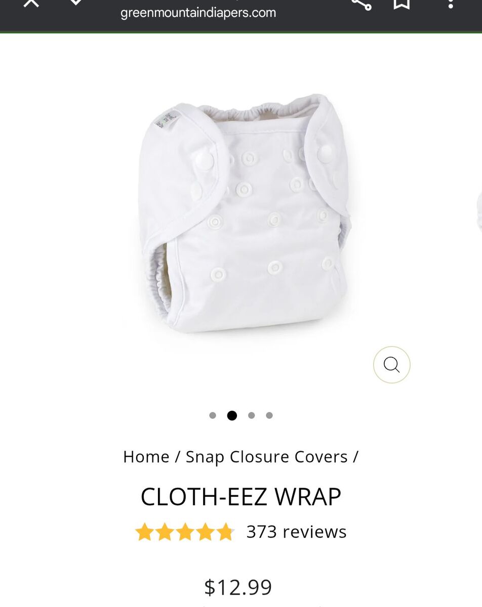6 cloth-eez prefolds size small (most unused) 2 other unknown prefolds (white) 3 cloth-eez doublers size small (organic unbleached) 6 Cloth-eez workhorses size small (organic unbleached) 2 Thirsties size one covers (1 white and 1 pink) both double gusset 1 Cloth-eez wrap cover size one double gusset some snappi pins