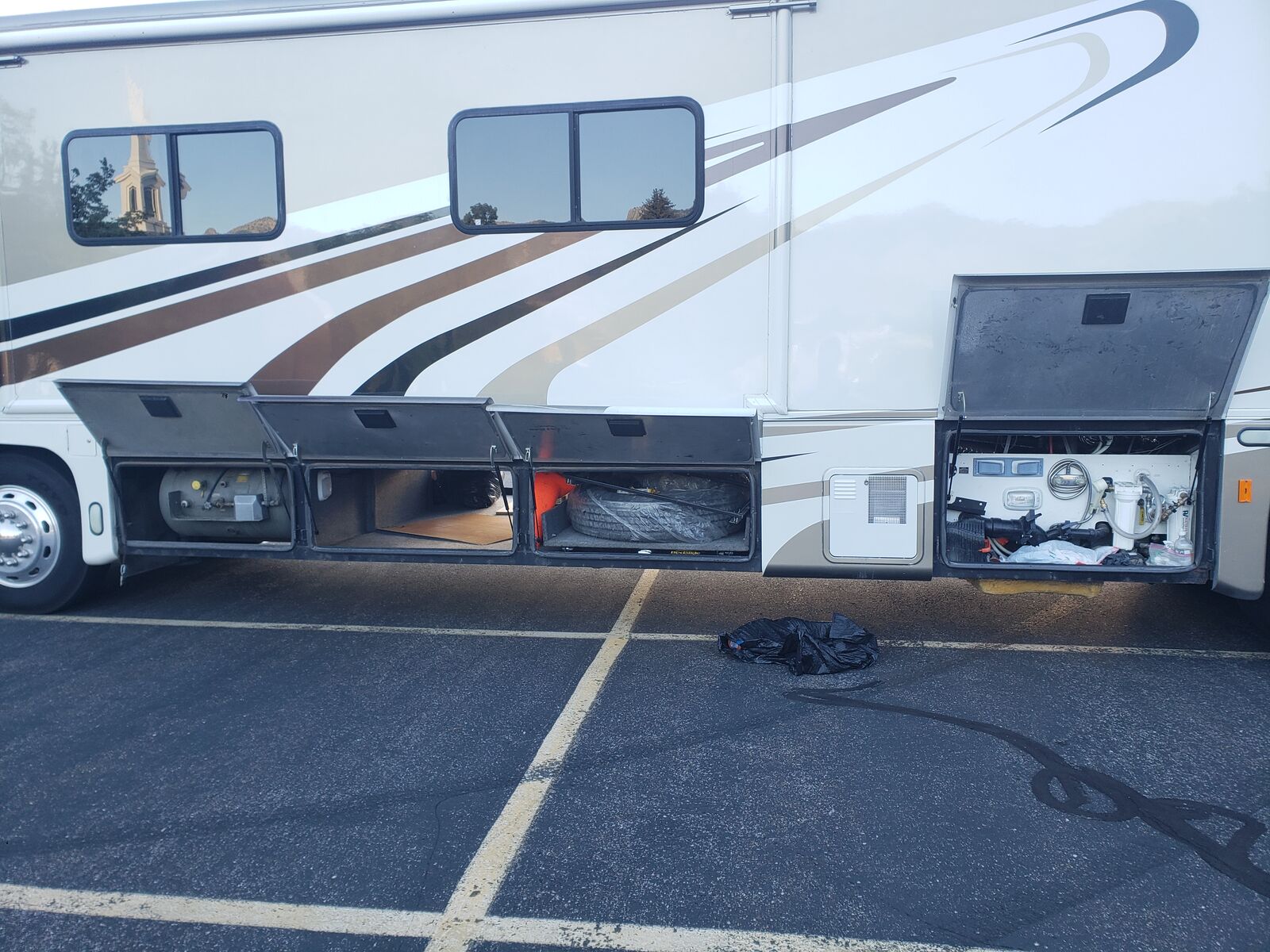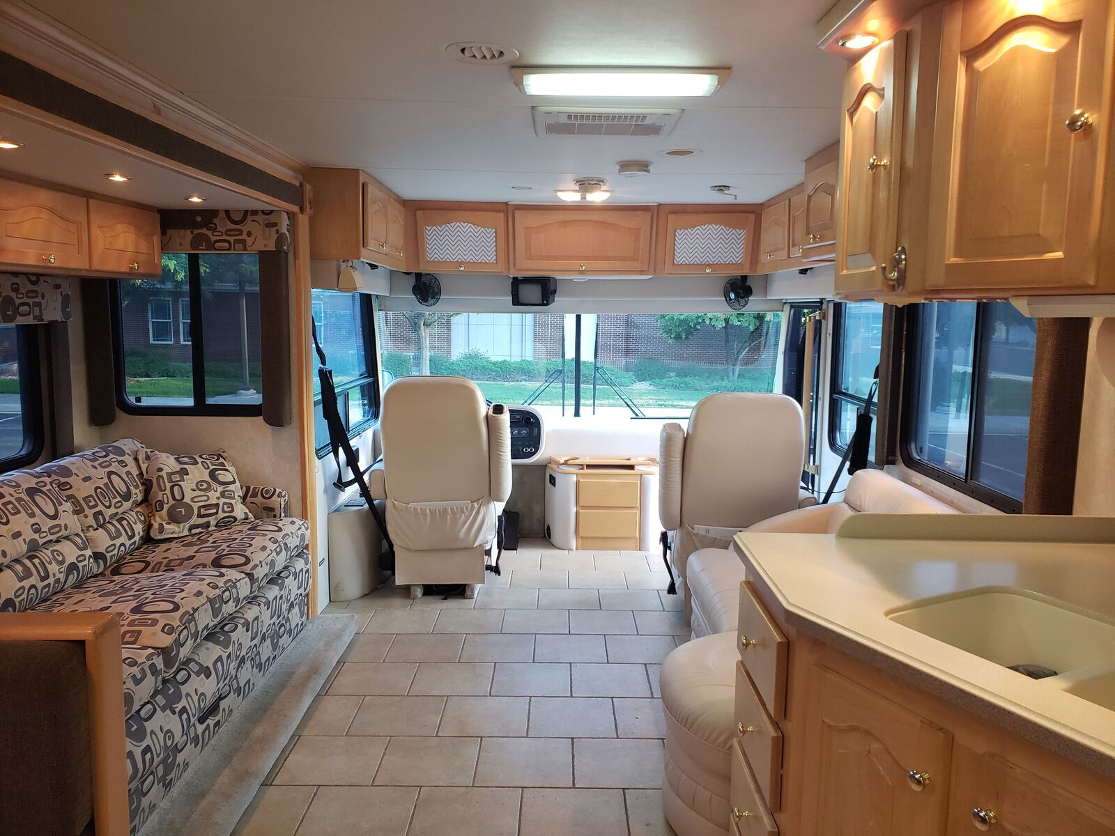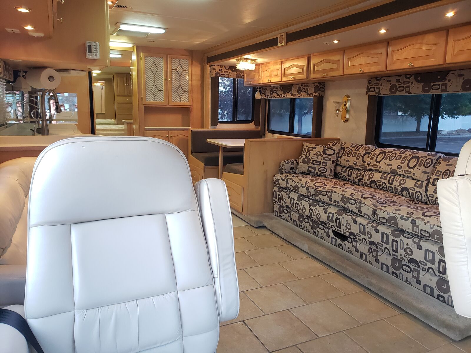 Also potentially available are an RVI tire and brake system, a Blue Rhino hitch and a 2004 GMC Envoy that is already set up to tow behind the motorhome.