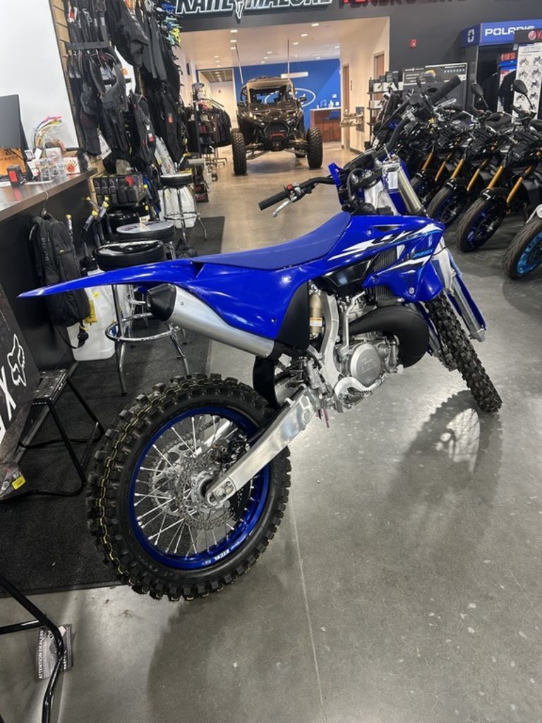 2025 Yamaha YZ250XTWO-STROKE HEART, ENDURO SOULFeaturing a powerful 250cc two-stroke engine and renowned high-performance chassis, the YZ250X was born to win Cross Country races.Features may include:TOP FEATURESTwo-Stroke Power: Tuned for Enduro RacingThe YZ250X is optimized for the unique demands of Hare Scrambles and GNCC® racing. The Yamaha Power Valve System (YPVS™)-equipped 249cc two-stroke engine is mated to a wide-ratio five-speed transmission for the ultimate cross country power plant.Advanced Motocross-Derived ChassisUltra-lightweight YZ250-spec frame features carefully engineered combination of aluminum castings, forgings and extrusions for the perfect balance of rigidity and flex. The industry-leading fully adjustable Speed Sensitive System KYB® spring-type front fork is matched with a fully adjustable high performance KYB® long-travel rear shock, both tested and tuned specifically for the needs of cross country racers.High Performance Brake SystemA high performance, lightweight braking system features large front pistons, rigid calipers, and 270mm front rotor and 240mm rear rotor, all combining to provide exceptional braking power and feel along with reduced unsprung weight.ENGINEExhilarating Two-Stroke PowerThe 249cc liquid-cooled reed-valve-inducted two-stroke engine is lightweight, compact and fun, with an incredibly wide, hard-hitting powerband.Tuned for GNCC® CompetitionThe YZ250X utilizes a revised compression ratio, revised YPVS™ timing and a model-specific digital CDI unit compared to its motocross sibling"”all focused on creating a broad, usable power delivery specifically suited to cross country and enduro-style competition.Efficient Air Intake DesignIntake design allows for a straighter, more efficient draw of air into the intake tract.CHASSIS/SUSPENSIONYZ250-Based FrameUltra-lightweight YZ250-spec frame features carefully engineered combination of aluminum castings, forgings and extrusions for the perfect balance of rigidity and flex. Removable aluminum rear subframe is constructed of square-section tubing for reduced weight.Industry-Leading KYB® ForkThe fully adjustable KYB® 48mm forks feature the Speed-Sensitive System which uses piston speed to control the damping force for super-precise handling, superb bump absorption and 11.8 inches of suspension travel. Additionally, a scraper between the dust and oil seal improves reliability in cross country conditions. New for 2025, the fork now includes a hand-adjustable knob for quick, toolless compression adjustments.Advanced KYB® ShockFully adjustable KYB® shock features reduced-friction Kashima Coat™ internals, 12.4 inches of travel, separate adjusters for high- and low-speed compression damping, and a full lock oil rebound system for increased comfort. It all adds up to fantastic rear wheel control and a sweet ride.ADDITIONAL FEATURESCross Country ErgonomicsA racy "gripper"-type seat and narrow fuel tank combined with a tapered aluminum handlebar and adjustable mounts create greater freedom of movement and more comfortable ergonomics for riders.Cross Country FeaturesThe YZ250X is focused on cross country competition with an 18-inch rear wheel, wide-ratio gearing, standard side stand, sealed O-ring chain, reserve fuel petcock and a new water-resistant PVC handle bar pad, all adding up to exceptional cross country performance.