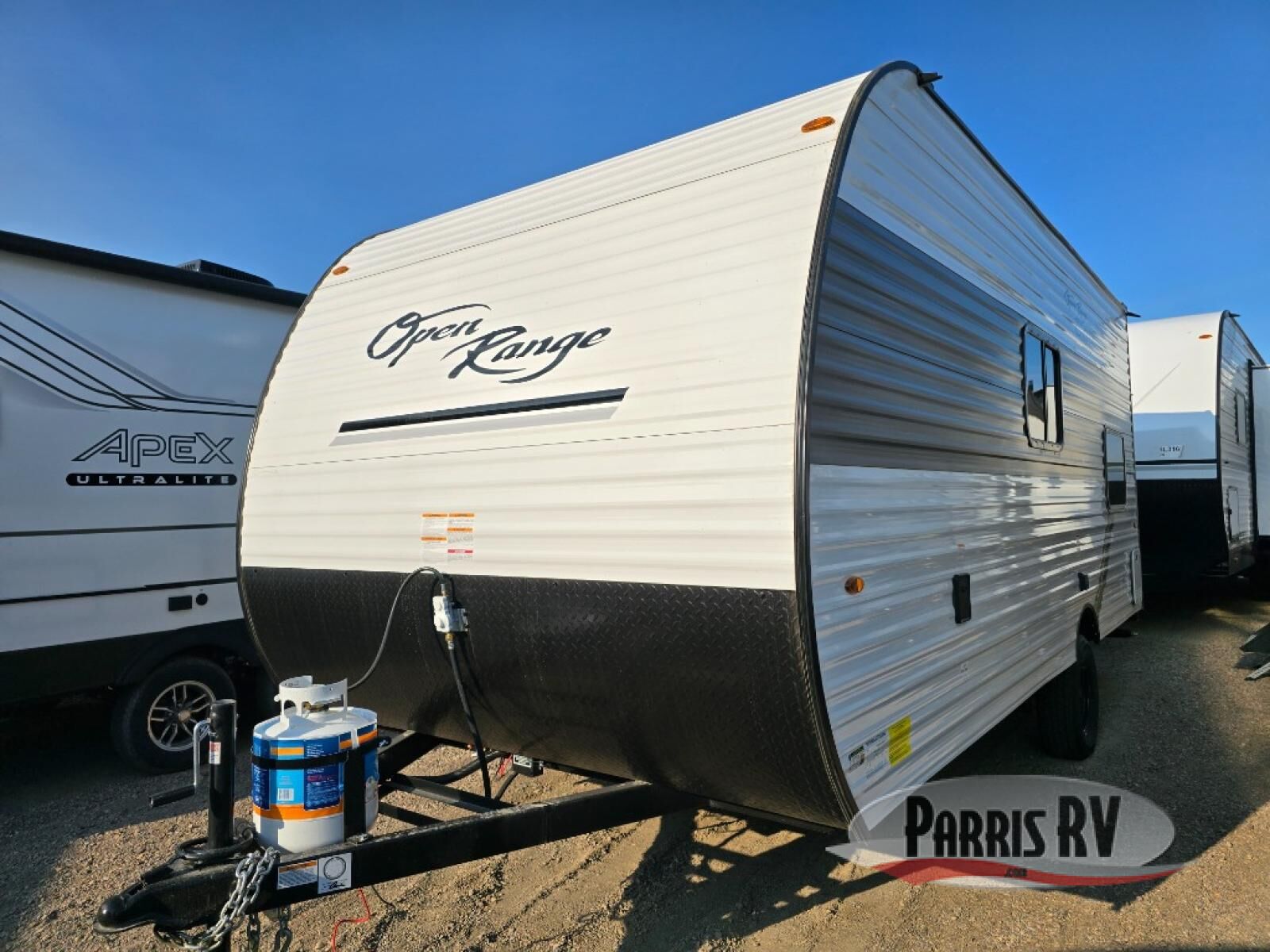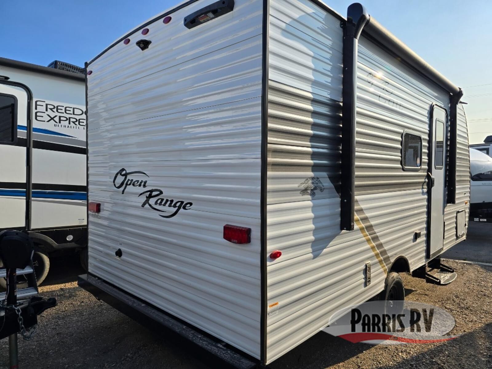 The affordable Open Range Conventional travel trailers by Highland Ridge are ready to meet your camping needs! You will appreciate the durable Magnum Roof system, plus each model is constructed with black front diamond plate protection, 5/8" main floor decking, and self-adjusting electric brakes with E-Z Lube axles for smooth towing. The 81" interior height means you won't feel cramped when relaxing with friends and family, and the residential vinyl flooring throughout is easy to clean, which will be perfect if you're camping with little ones or pets. These models also include a ceiling mount Bluetooth speaker plus a 13,500 BTU roof mounted A/C to keep you cool on those hot summer months.