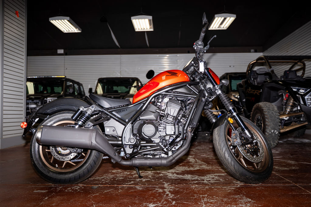 New 2025 Honda Rebel 1100 DCT SE Motorcycle For Sale In Salt Lake City, UT This New 2025 Honda Rebel 1100 DCT SE Motorcycle is for sale at Karl Malone Powersports SLC conveniently located in Salt Lake City, Utah. Our knowledgeable team is eager to assist you, so don’t hesitate to contact us today to schedule an appointment. If this isn't the exact Honda Motorcycle you're looking for don't hesitate to go back and revise your search. We're sure to have the perfect Motorcycle for you in our showroom in Utah. We invite you to visit us at Utah’s premier Honda dealer for new and pre-owned Motorcycles for sale. Let us help you find the ideal Motorcycle to take home today! Karl Malone Powersports SLC Address: 1379 W 3300 S, Salt Lake City, UT 84119 Phone: (801) 972-8725 2025 Honda Rebel 1100 DCT SE Meet our newest Rebel Our Rebel 1100 models are smart, powerful cruisers built for the way we ride today. And this year they’re even better! Updates include a bigger instrument screen, Honda RoadSync, more comfortable seats, a more convenient USB port and more. The biggest news? Check out our all-new Rebel 1100 SE, with tasty upgrades like a headlight cowl, bar-end mirrors, short front fender, custom seat, and an awesome Flare Orange Metallic paint scheme. Features may include: 1083cc Twin-cylinder engine The powerful parallel-twin engine sets a new standard in its class. Proven in our Africa Twin, it offers ample torque at any RPM, offering power for both easy cruising and free-revving sport riding. Low, comfortable seat An impressively low seat height of 27.5 inches ensures most riders can firmly plant their feet on the ground. It makes for a comfortable ride, confident stops, and easy maneuverability in tight spaces. Additional foam this year makes the seat even more comfortable. Low center of gravity, compact mass We created a platform with unparalleled maneuverability, using a compact engine layout and positioning weighty elements like the crankshaft near the bike's center of gravity. New Five-Inch TFT Instruments Of course the big, bright five-inch Thin Film Transistor display gives you all the typical instrument information you want (speedometer, tachometer, time, fuel level, etc.) in a selectable format. With our new Honda RoadSync app, you can also display music, phone and navigation functions. Six-speed automatic Dual-Clutch Transmission Our revolutionary automatic DCT gearbox offers the best of both worlds: steel gears for durability and the choice between automatic or manual mode with paddle shifters. It provides a worry-free experience during relaxed cruising or stop-and-go traffic. All-LED lighting package When it comes to lighting, the Rebel lineup embraces an all-LED setup, offering lighter, brighter, and longer-lasting illumination. Unicam® engine design Our exclusive Unicam® engine delivers impressive power down low and at higher revs too. This