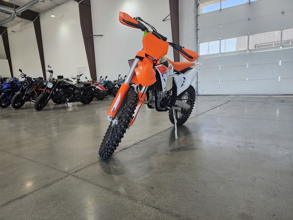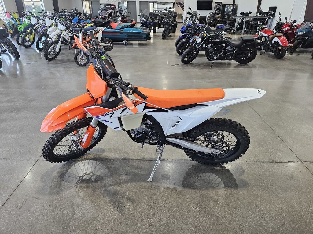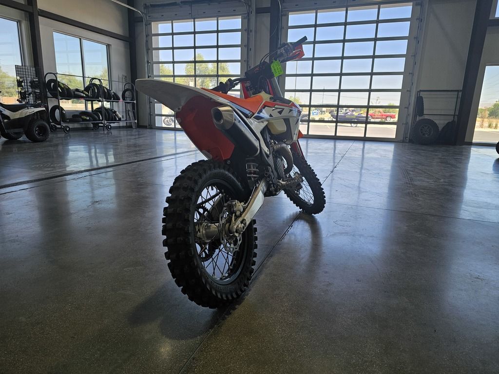 Used 2023 KTM 450 XCF-W Dirt Bike For Sale In Salt Lake City, UT This Pre-Owned 2023 KTM 450 XCF-W Dirt Bike is for sale at Karl Malone Powersports SLC conveniently located in Salt Lake City, Utah. Our knowledgeable team is eager to assist you, so don’t hesitate to contact us today to schedule an appointment. If this isn't the exact KTM Dirt Bike you're looking for don't hesitate to go back and revise your search. We're sure to have the perfect Dirt Bike for you in our showroom in Utah. We invite you to visit us at Utah’s premier KTM dealer for new and pre-owned Dirt Bikes for sale. Let us help you find the ideal Dirt Bike to take home today! Karl Malone Powersports SLC Address: 1379 W 3300 S, Salt Lake City, UT 84119 Phone: (801) 972-8725 2023 KTM 450 XCF-W With impressive and efficient performance, a lightweight frame and subframe, race-proven bodywork and ergonomics, a compact exhaust system as well as exceptional cooling and suspension, the KTM 450 XCF-W is sure to remain the benchmark for all others to follow. Features may include: ENGINE & EXHAUST Engine Combining compact dimensions with immense power output, this 450 cc fuel-injected SOHC powerplant is the most powerful and refined on the market. Its class-leading power delivery is available throughout the entire rev range and with its low weight of only 29.2 kg (64.3 lbs), is also the lightest 450 mills engine out there. Cylinder Head The KTM 450 XCF-W engine is fitted with a compact SOHC cylinder head for optimal mass centralization. The head configuration promises efficient power delivery and unrivaled performance. A single overhead camshaft also ensures optimal gas flow, with low-friction rocker arms and timing chain guides guarantee consistent performance throughout the rpm range. CHASSIS Frame All KTM XC-W and XCF-W models feature high-tech, lightweight Chromoly steel frames with race-derived geometry, optimal stiffness, and unparalleled feedback for the rider. This translates into a playful handling character, with remarkable stability at speed - not to mention FACTORY RACING style thanks to the striking orange coating. The subframe is made of extra-light and ultra-stable aluminum profiles, weighing less than 900 grams providing rear fender stability and durability in the event of a loop out. Swingarm The KTM 450 XCF-W features a one-piece aluminum swingarm, which is manufactured using a gravity die-cast production process. This results in exeptional strength at the lowest possible weight and the perfect flex behavior. ERGONOMICS & COMFORT Handlebar All KTM XCF-W models are equipped with adjustable, high-strength aluminum tapered handlebars made by NEKEN. These can be mounted in four different positions. Standard with ODI vulcanized grip on the right side and a comfortable ODI lock-on grip on the left, your only worry is hanging on, and letting rip.