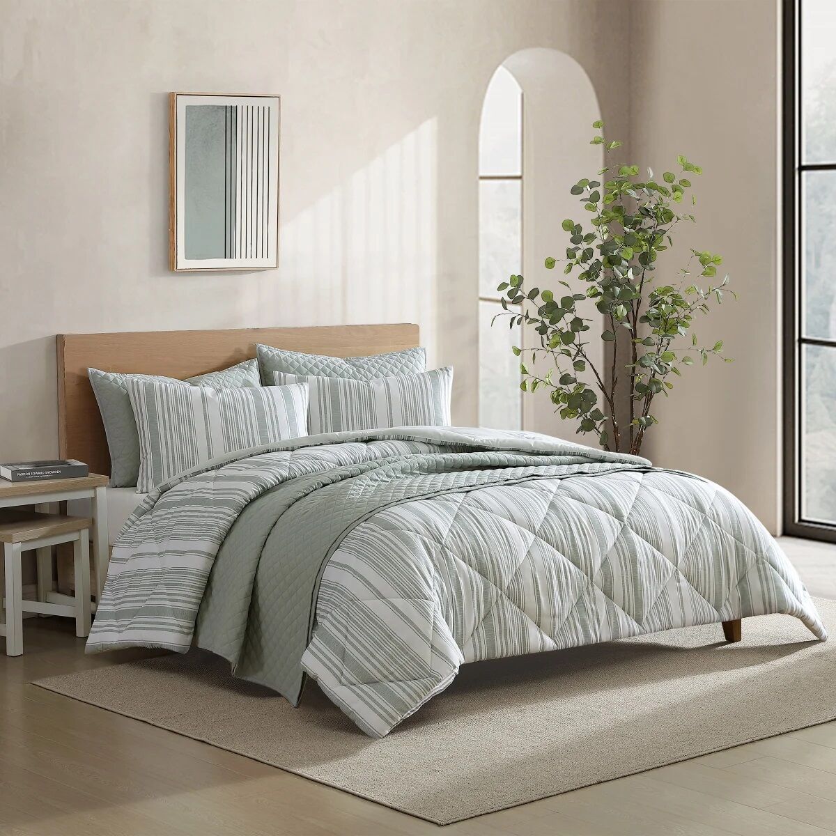 Features: - Includes: 1 Comforter, 2 Shams, 1 Quilted Coverlet, 2 Quilted Shams