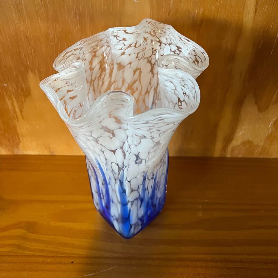 VenmoThis beautiful Cobalt Blue and White hand-blown Ruffled Top/Handkerchief Vase is absolutely beautiful and would make a great gift.