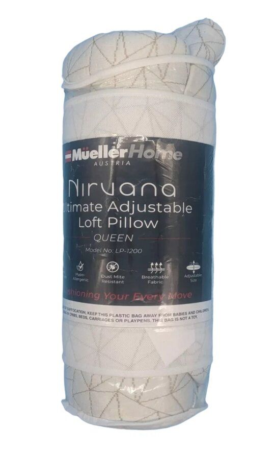 Snuggle with the Mueller Nirvana Ultimate Adjustable Loft Pillow! This queen-size memory foam pillow molds to your head and neck, providing personalized comfort and support. Its adjustable loft allows you to customize the height to suit your sleeping needs.