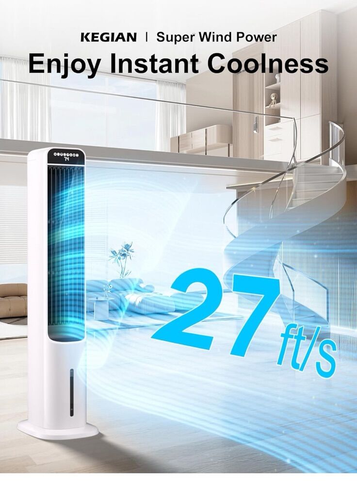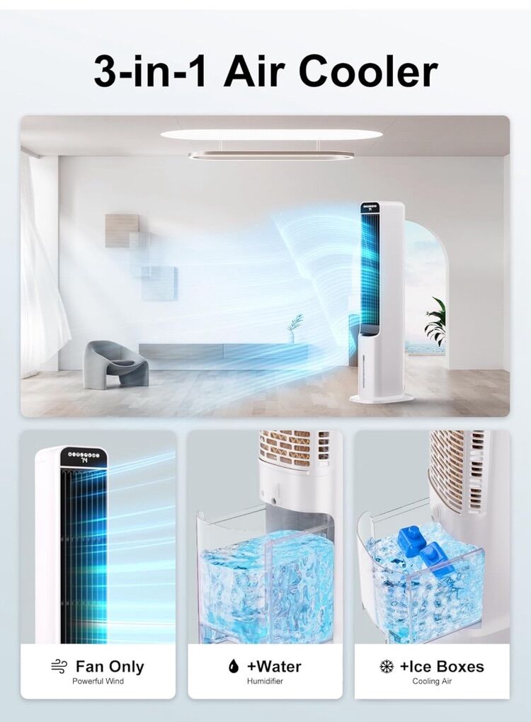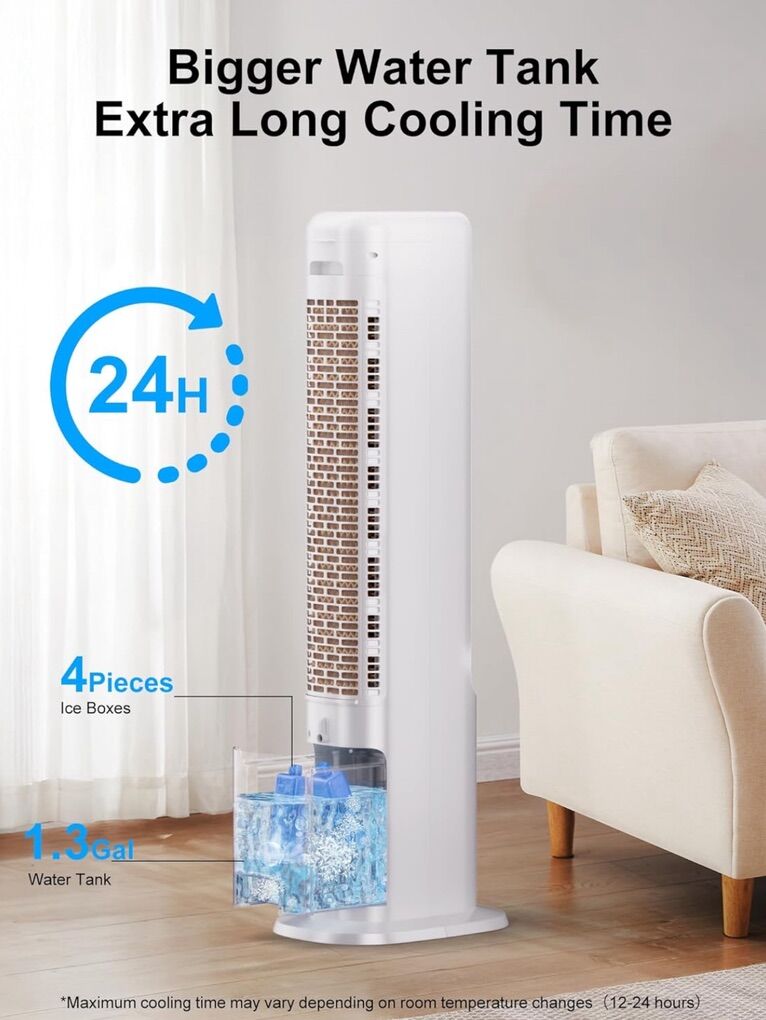 VenmoBrand new, Evaporative Air Cooler, 41 Windowless Portable Air Conditioner, 3-in-1 Cooling Fans that Blow Cold Air, 4 Ice Packs, 12H Timer, 26ft Remote, 120° Oscillation, Queit Swamp Cooler for Room