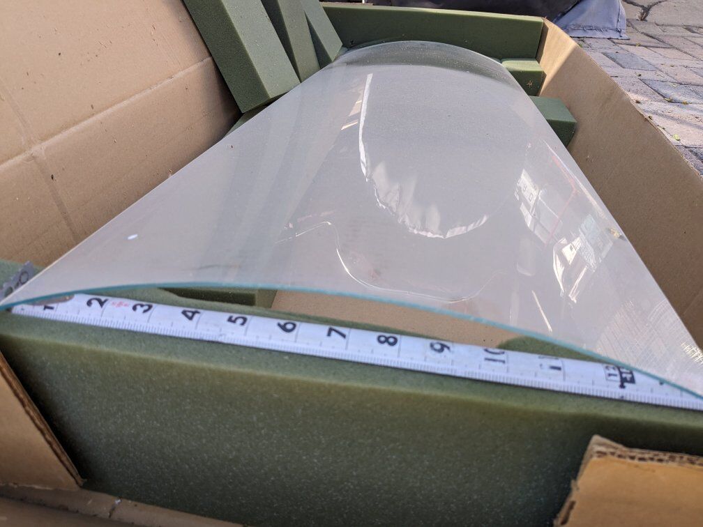 Clear glass(not frosted just dusty) Curved piece of glass for China hutch project that has long been forgotten. Perfect piece of glass to build an entire project around.
