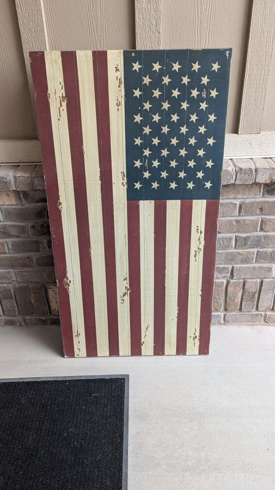 VenmoThis is a rare Pottery Barn wall hanging. Great for the 4th and 24th holidays or everyday. I've never hung it up, it has hooks on the back and has a distressed look. Very beautiful and large. 27"X50" No scammers please!