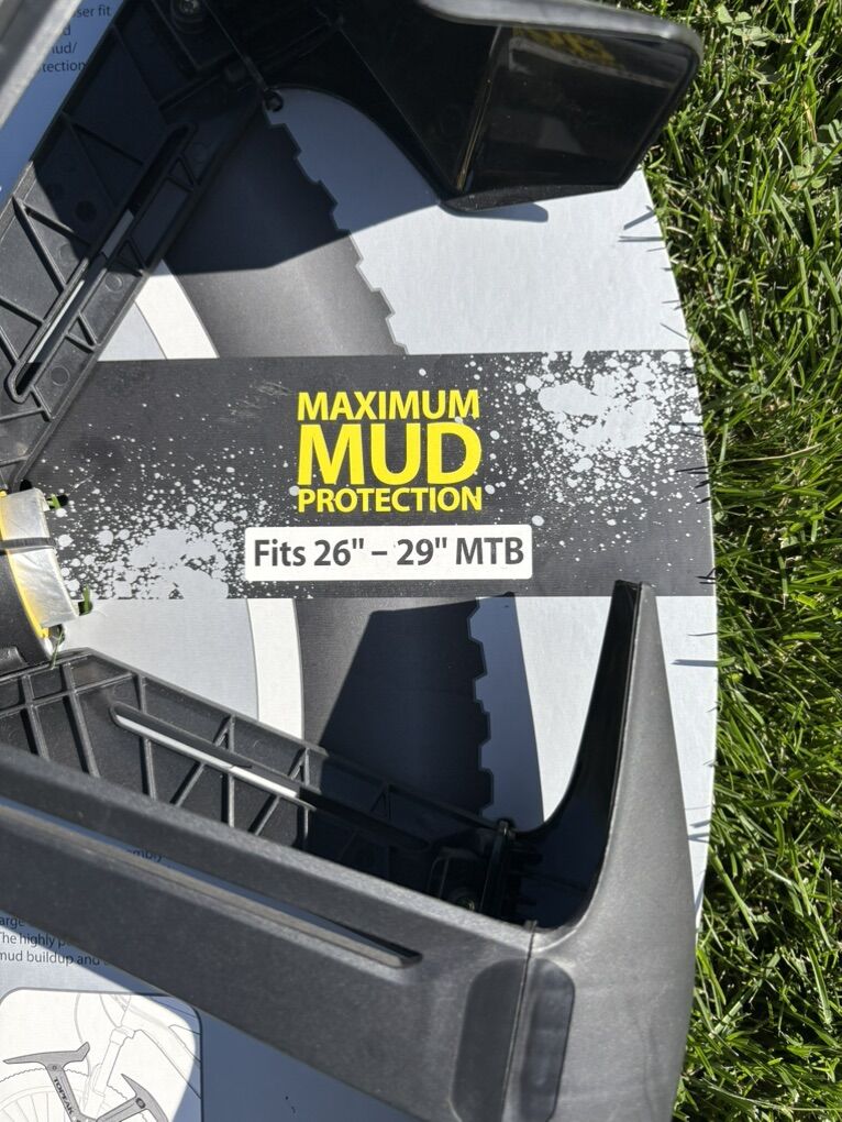 VenmoThis mud guard is designed for the front wheel and has two guards to protect against mud/dirt off of the front tire. Lightweight and easily assembled/attached! Fits 26-29” tires. Take a look at the pictures and descriptions on the packaging for further details.