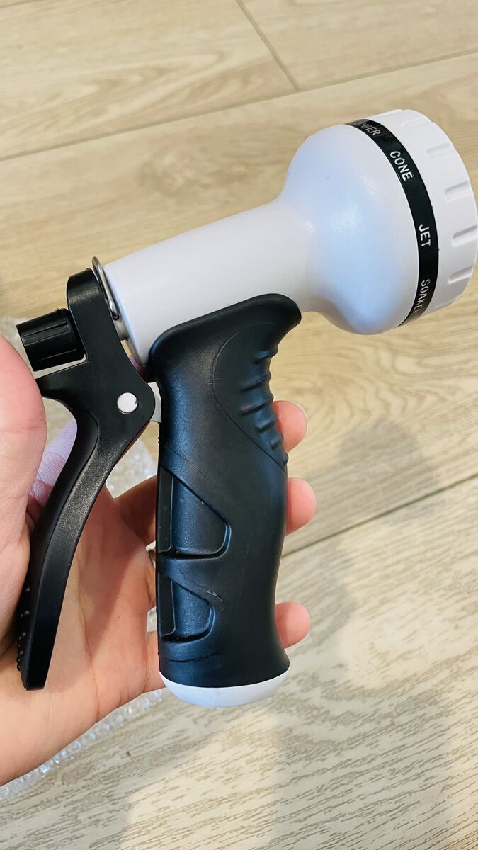 10 Adjustable Spray ModesRotating flaps allow you to choose from a variety of different watering modes to control everything from a soft and delicate shower all the way to high-speed jets. The ergonomic rubber handle, non-slip and easy to handle, makes our water hose 100ft easy for both adults and children to use.You can easily tackle a variety of watering and cleaning tasks,such as watering crops and flowers during different stages of growth,cleaning cars,floors,swimming pools,windows...