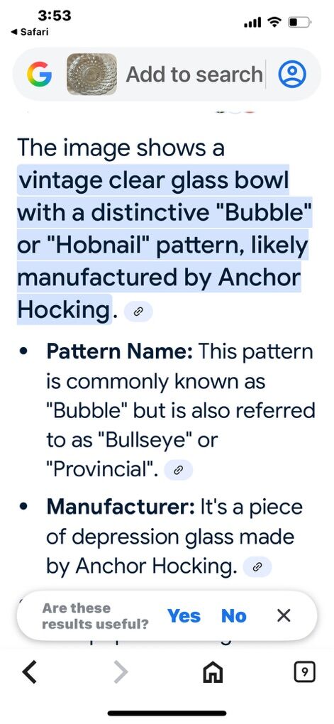 Venmo6 inch anchor Hocking glass bubble 1930's. 2 of these.price is for each.