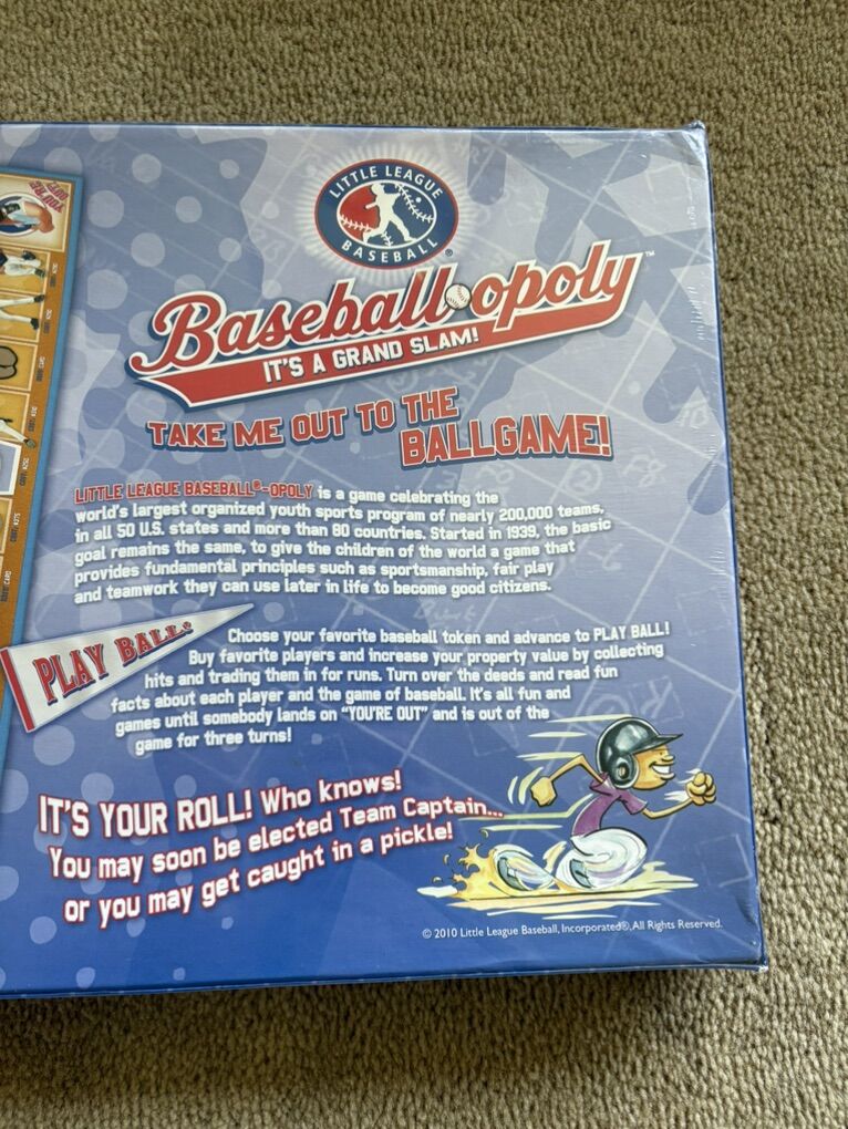 NEW (sealed in plastic) Little League Baseball-opoly Board Game: It's a Grand Slam! A Monopoly-style game by Late for the Sky, age 8+, 2-6 players. New, unopened condition. Text only. Cash or Venmo.