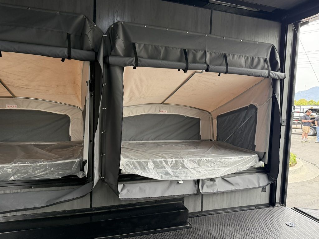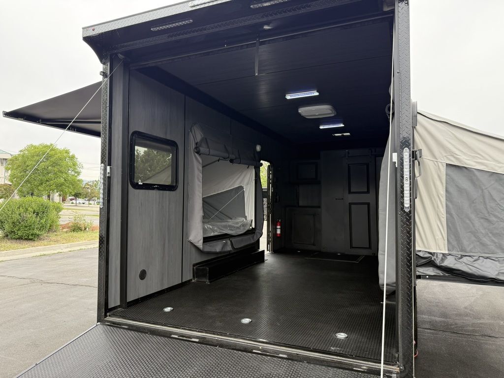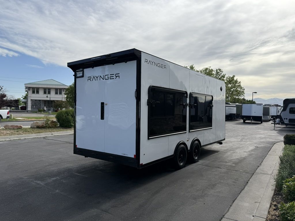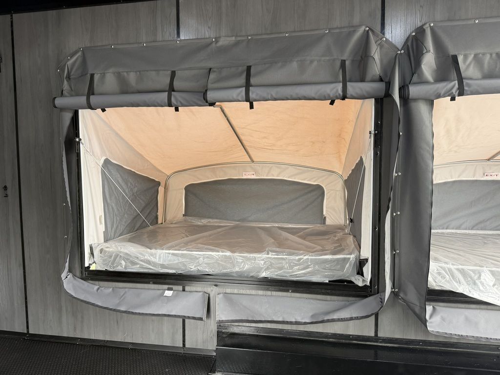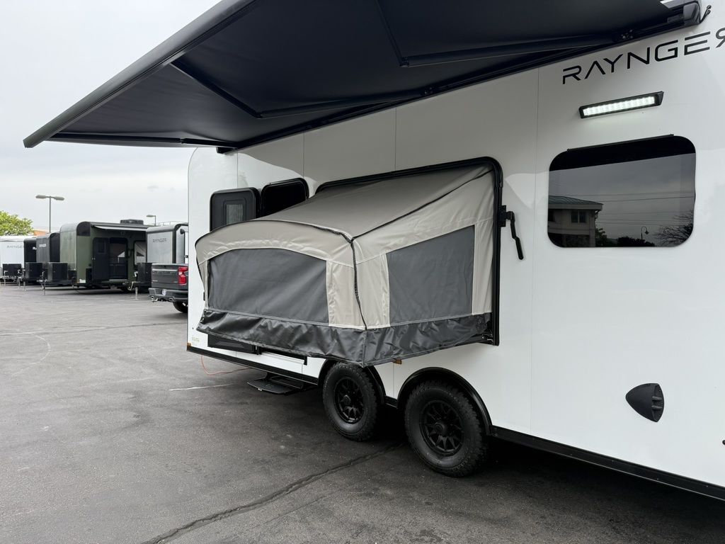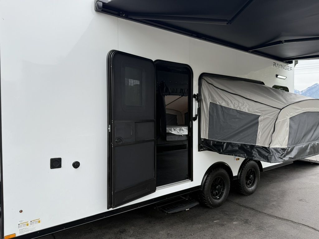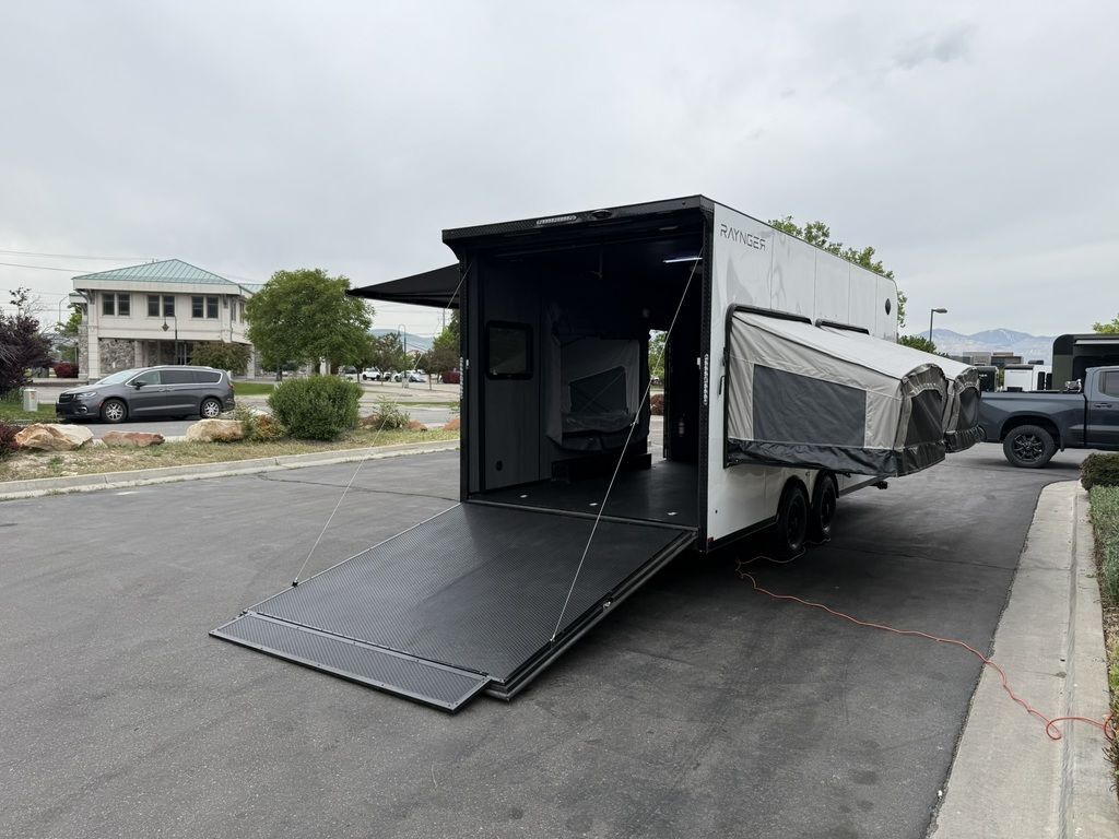 SOLD, INQUIRE WITH SALES FOR NEXT AVAILABILITY. LIMITED TIME $436 A MONTH WITH ZERO DOWN WITH OUR SPECIAL LOCAL CREDIT UNION PARTNER!!! NO PRE-PAYMENT PENALTIES!!! FULL BATH/HALF KITCHEN!! NEW 2025 MODEL!!! WILL FIT ANY STOCK SIDE BY SIDE UTV!!! RAYNGER PREMIUM OFF ROAD TOY HAULER CAMPER!!! 18 INCH GROUND CLEARANCE!!! OFF ROAD TIRES!!! FULLY INSULATED!!! HEATING AND A/C!!! THREE FOLD OUT/POP OUT TENTS WITH MATTRESS!!! CARGO BASKET!!! LED LIT AWNING!!! 84 Inch Rear Entry Height/87 INCH INTERIOR HEIGHT!!! 90 Inch Rear Entry Width!!! Aluminum Ventilated Locking Generator Box!!! UPGRADED TORSION AXLES!!! And Much MUCH MORE!!! Check out our Specs!!! • 6” I Beam Frame• Flat Top Design• Flat Front Design• Wall Posts 16” on Center• Cross Members 16” on Center• Roof Bows 16” on Center• Rust Inhibiting Z-Tech Protection on Chassis• Ameraguard on Tongue• Ameraguard on Rear Bumper• Ameraguard Around All Door Openings and Stepwell• Ameraguard Around Edges of Ramp Door• 3500 LB Spring Axles• 2-5/16” Coupler• One-Piece Aluminum Roof• ST235/75R15 Aluminum Wheels with Chrome Center Caps• 2000# Ramp Door with Eberhard Latch• 30” Tempered Glass RV Door with Screen Door• .030 Exterior Metal with Screwless Sides• 24” Black Stoneguard• 3” Black Bottom Trim• Sand Pad• Black Door Hold• 2.7mm Charcoal Textured Vinyl Ceiling • 9mm Charcoal Textured Vinyl Walls• 3/4” Engineered Wood Floor with Rubber Coin Overlay• (6) 1200 LB Floor D rings Installed with Backer Plates• LED Clearance Lights and Tail Lights• LED Back-up Lights• No Show Wheel Box• Spoiler with Toggle Switch• RV Step• 7’ Interior• (2) 17” Chrome Base Lights with Switch• (1) Black 17” Spot Light with Switch• (1) 30 Amp Panel with Marine Plug• A/C Unit with Heat Strip• (3) Interior Recepts• (1) Exterior Recept• 12V Battery and Charge Line• Prep for Backup Camera• Wet Sounds System• (3) Blue Interior Cabinet Lights• (1) 6’ Section of Flex Lights• Black ATP Rear Header and Hoop• Black ATP Fenders• Insulated Walls & Ceiling• Base Cabinets• Overhead Cabinets with Netting Over Compartments• Pop Out Tent• Black ATP Storage/Generator Box Mounted On Tongue 7SW095406