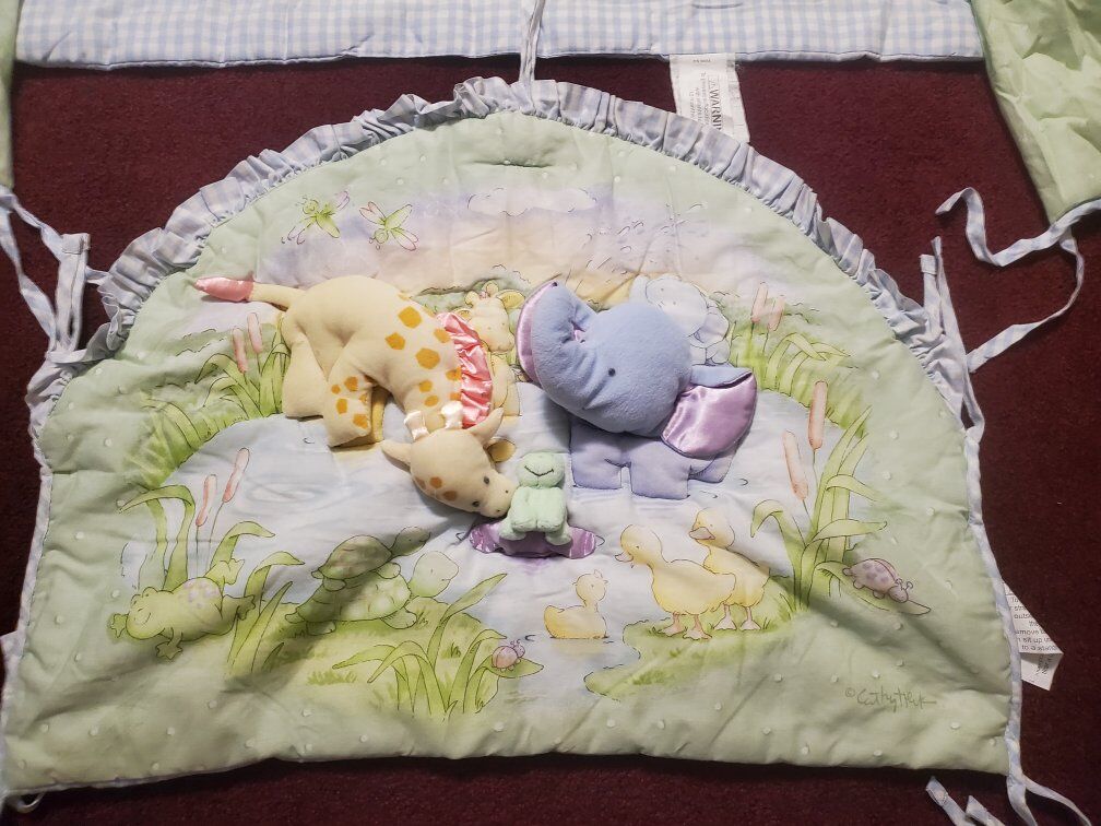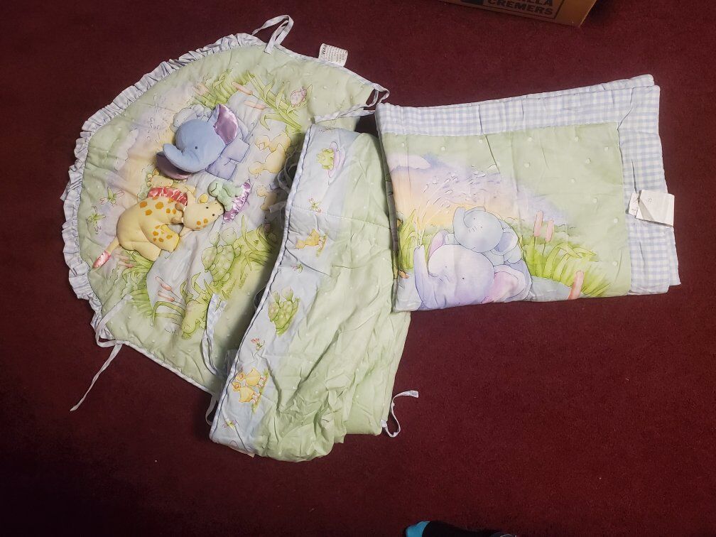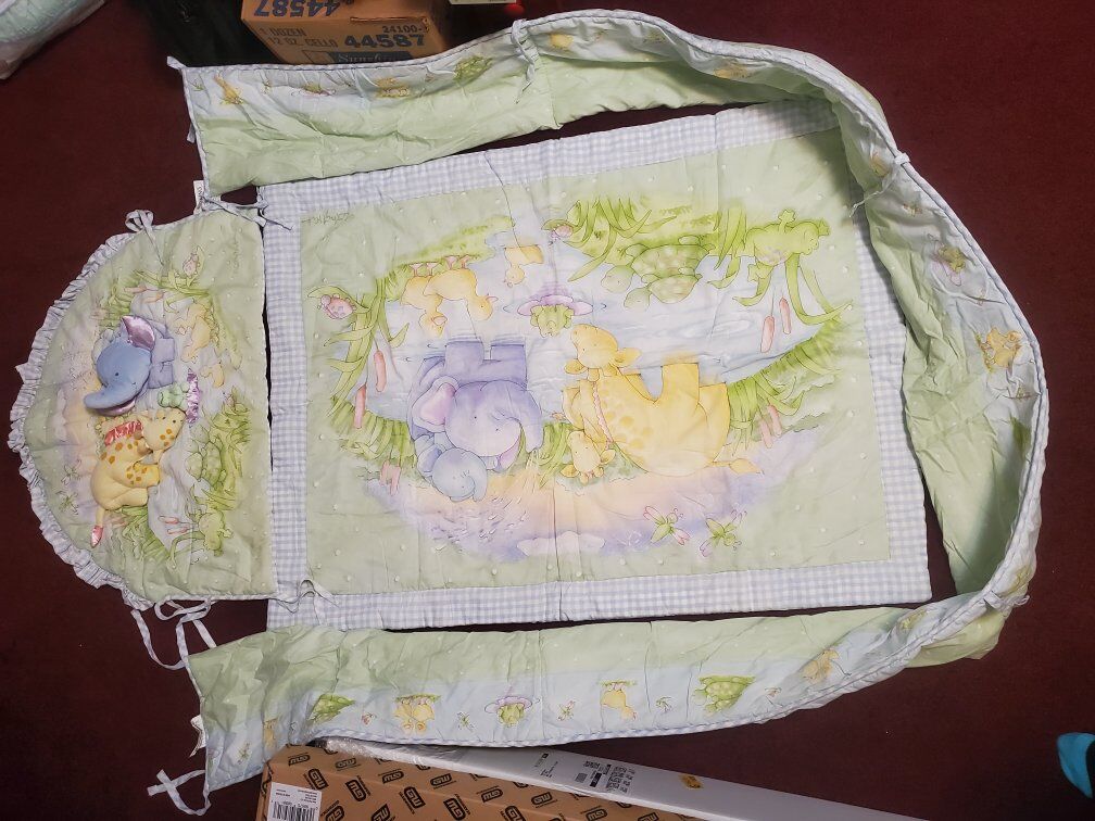 animal comforter and matching diaper holder, crib bumper Infant comforter ensemble You will receive what you see in the pictures Animal comforter Giraffe elephant frog turtle duck $25 cash only