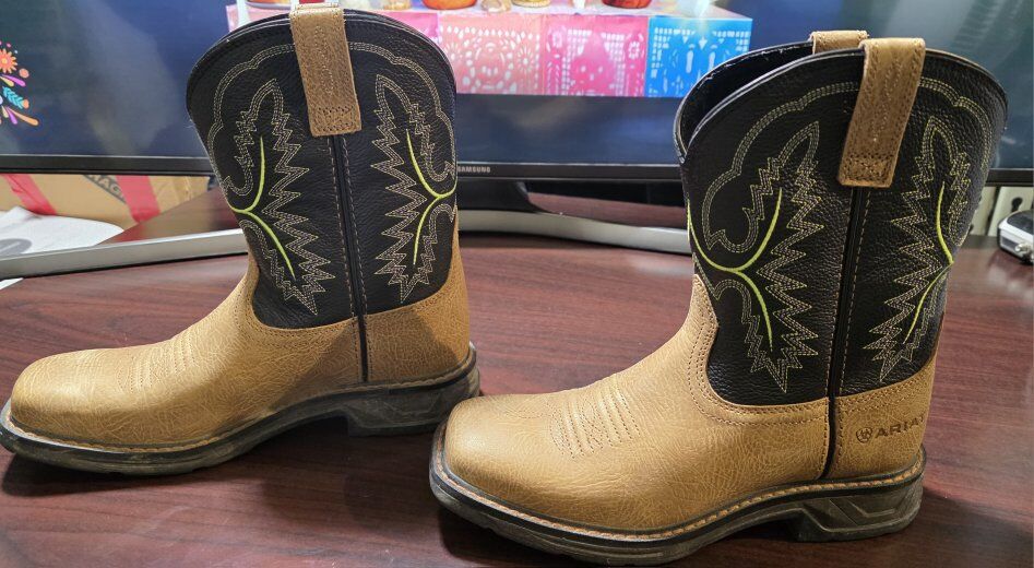 Pre-Pre-Owned ARIAT WORKHOG XT TUMBLED BARK - BOOT KIDS BOYS - 10035884.