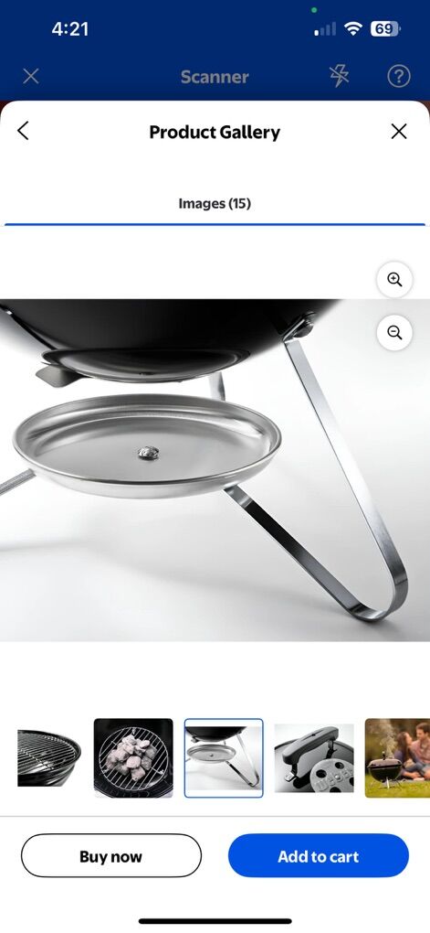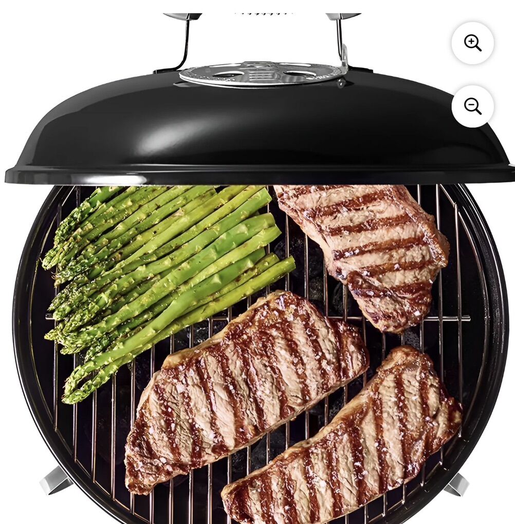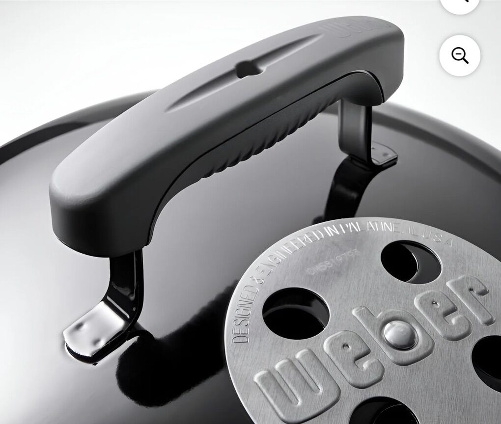 ApplePayMake your holiday at the beach even more enjoyable with this black 14 In. Smokey Joe charcoal grill. This portable, Go-Anywhere grill is ideal for cooking up steaks, chops, vegetables, chicken or small roasts. Also great for picnics and tailgate parties this compact sized griller has three aluminum legs and an aluminum ash catcher. Weber Smokey Joe 14 Black Charcoal Grill: • Cooking area = 147 square inches • Holds up to five burgers made with a Weber burger press • Compact and lightweight for grilling on the go • Durable plated steel cooking grate retains heat and is easy to clean • Porcelain-enameled lid and bowl retain heat, and won't rust or peel • Rust-resistant aluminum dampers you to easily control the temperature inside your grill • One glass-reinforced nylon handle • Aluminum ash catcher
