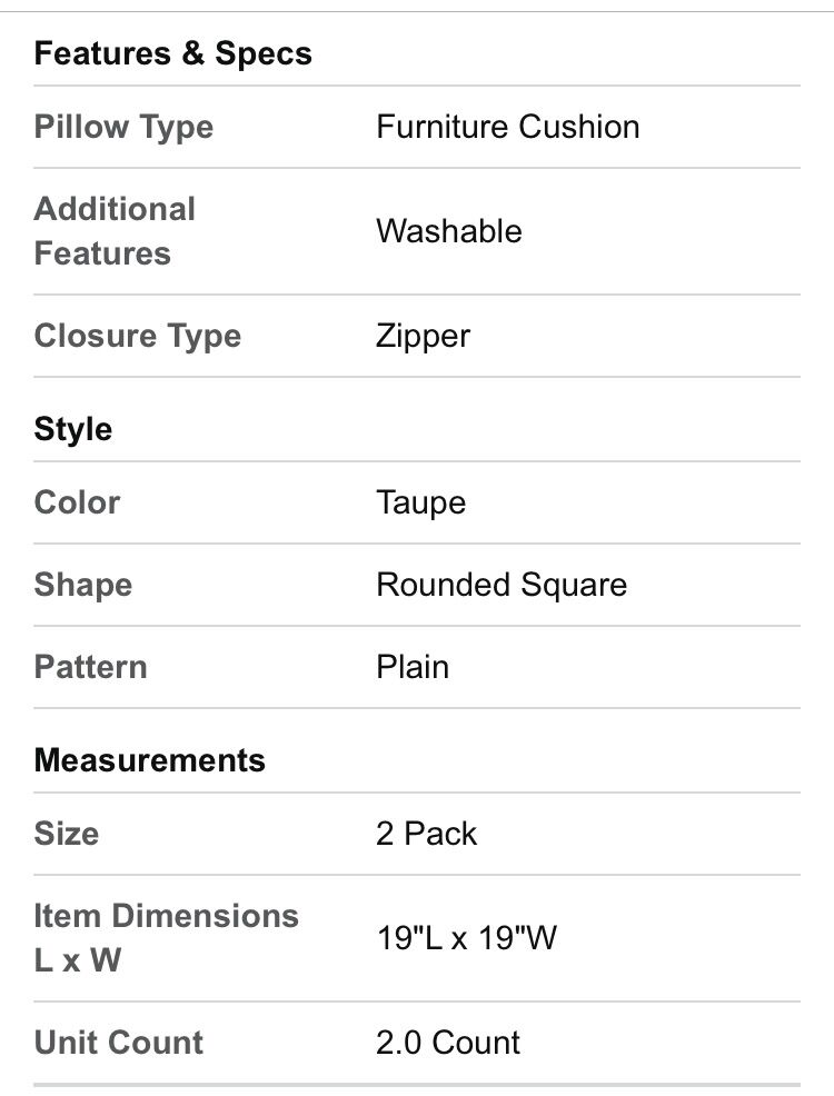 Brand New Set of 2 Taupe Outdoor 19 X 19 Seat Cushions from the Sweet Home Collection.