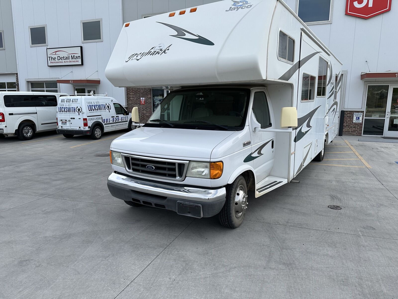 Book Now for summer fun In Utah and the nearby states! Jayco Greyhawk class C 31 ft. motorhome for rent. $180 per day. Ford Triton V-10 engine, 5 speed Allison Automatic transmission with overdrive. Call Robb Taylor at 801 319 2250. Beautiful spacious floorplan, immaculate condition, sleeps 8. One large slide out. Dinette Converts to a bed, large overhead bunk, sofa/bed with lots of cabinet storage throughout the RV. Central air conditioning, full kitchen, full bathroom. TV in the main area. Private master bedroom with queen size walk around bed with under bed storage, 16 ft. outside patio awning, outdoor storage compartments. 5000 watt Onan generator to run AC and lights.