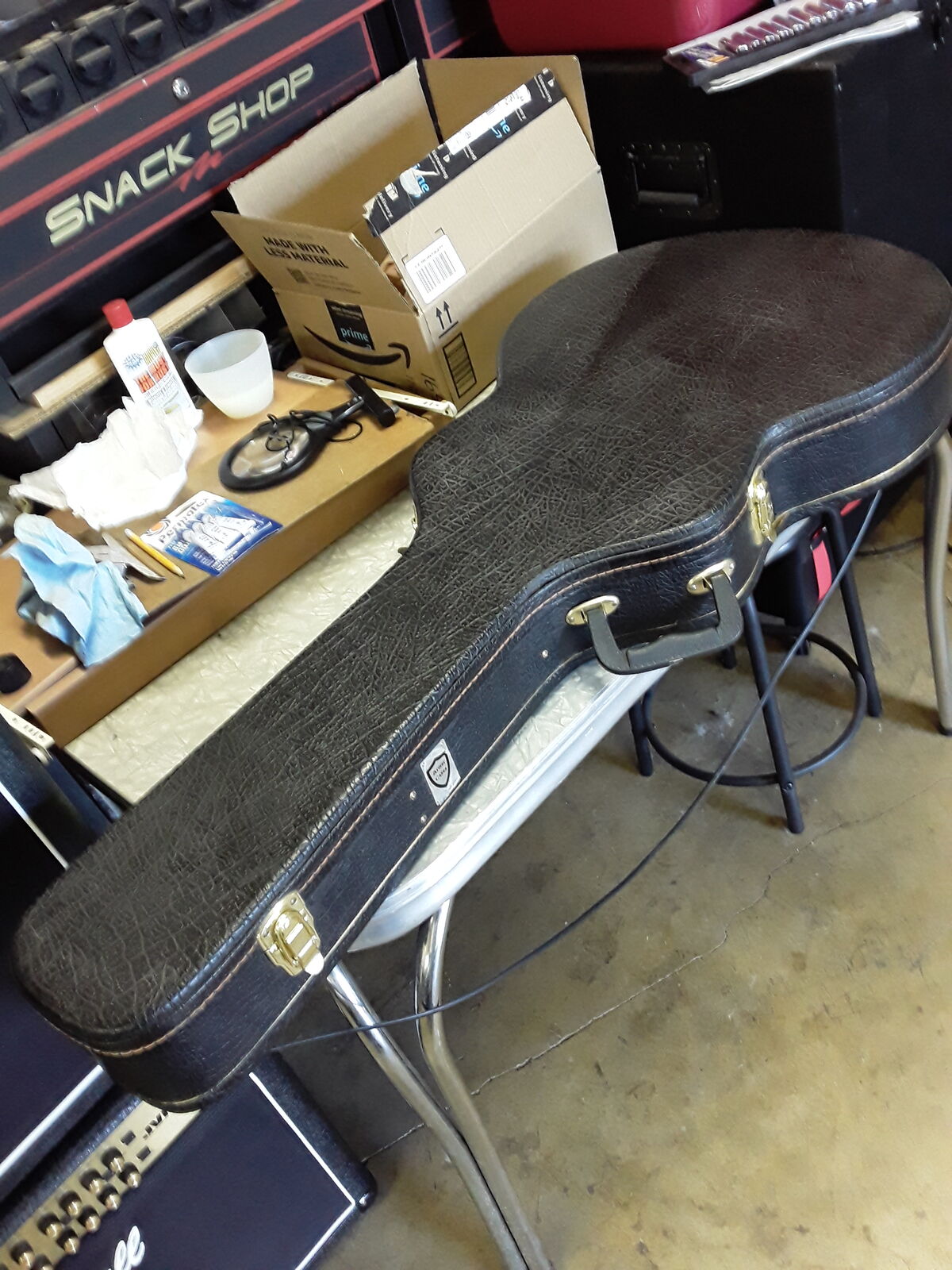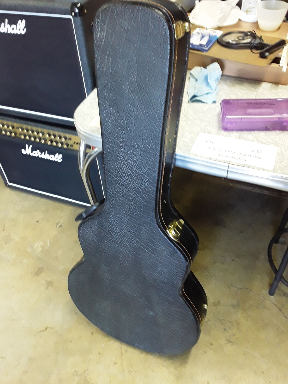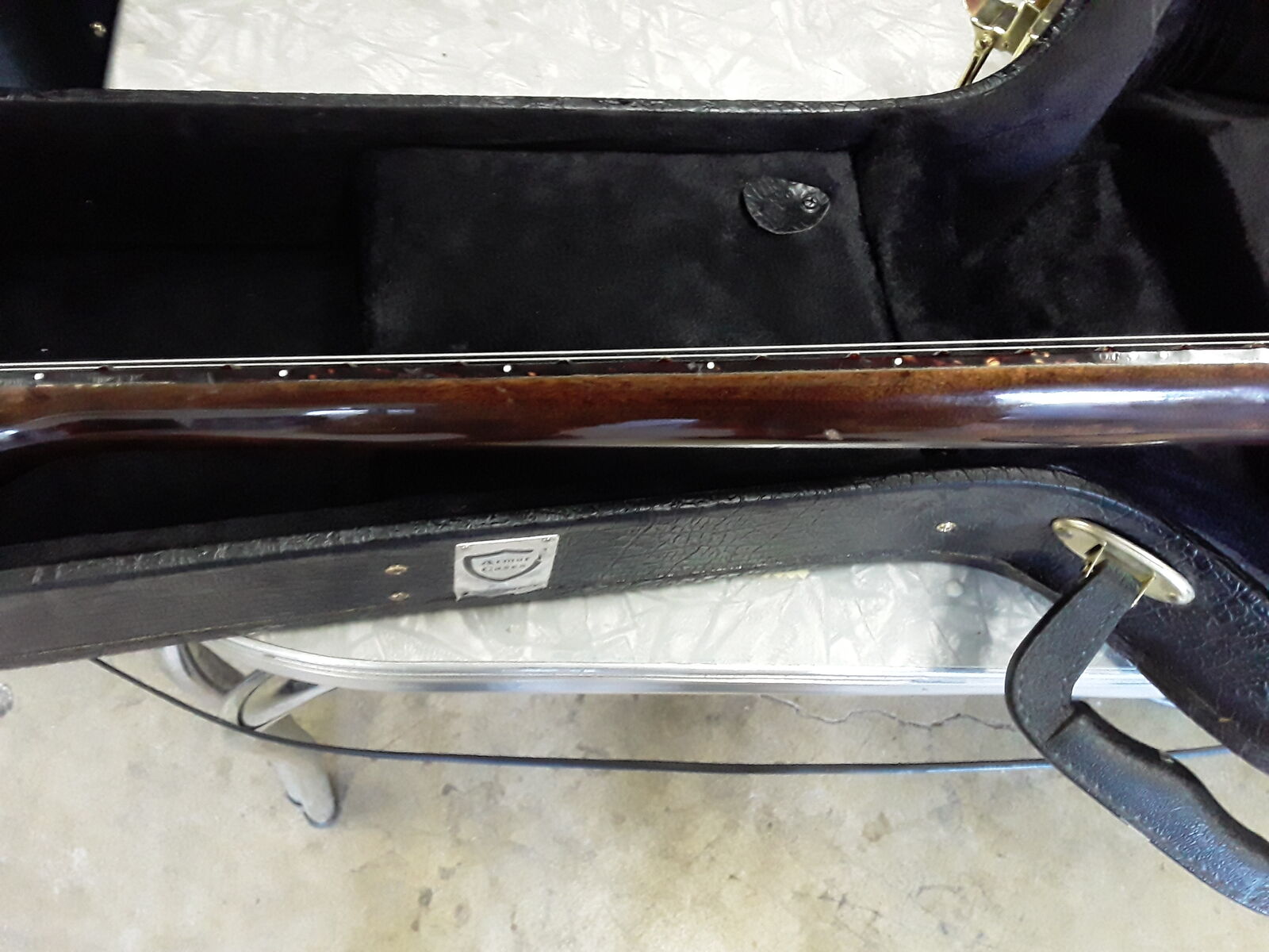 Hardshell case included. Armor Case brand, really good shape, includes guitar strap in pocket.