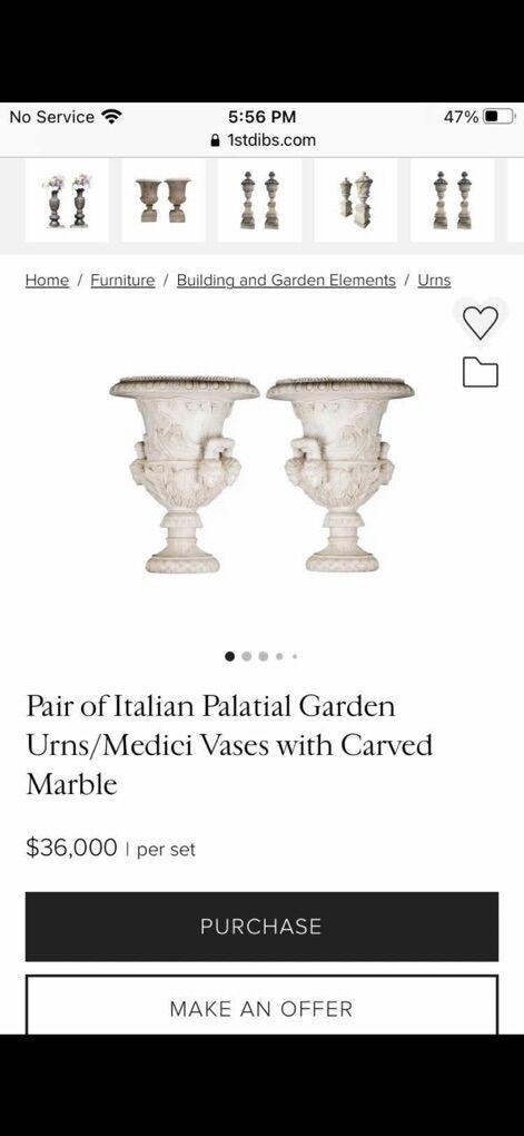 VenmoIMPOSSIBLE TO FIND, fabulous huge delightful, detailed to the smallest details urn, you will be delighted and compliments in your home will always be provided. It is also suitable for decorating wedding celebrations and for large halls of hotels or restaurants !! Anyone passing by will pay attention to it, be sure !! It must be seen in reality, the figures and the urn itself are made just perfectly !! Made of some of kind resin, and not very heavy, as I easily lift it, but it looks like heavy marble, you will love it !! Excellent like a new condition!! Retail price was $9980 + tax Dimensions:high 33.5” inches x width 26 “ inches, diameter 24” inches (2 ft). This is a very huge and prominent urn vase!!!!One of a kind vase urn I’m sure!!