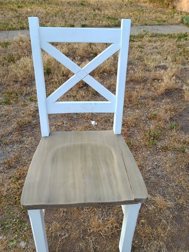 cute white and natural wood project chair. it has a crack on the seat is why it's called a project chair, because in the right hands it can be a great, cute accent chair. great for someone with upholstery or wood experience. sold as is. $12 cash pickup in Ogden either at the North end of town by 5 points or South end of town by wsu.