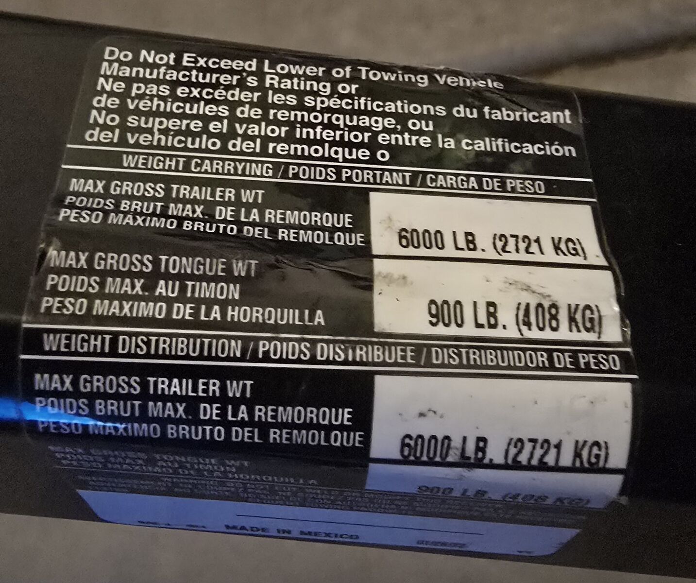 VenmoThis DRAW-TITE Class 4 receiver hitch is rated for up to 6,000 lbs. gross trailer weight (GTW) and up to 900 lbs. tongue weight (TW).