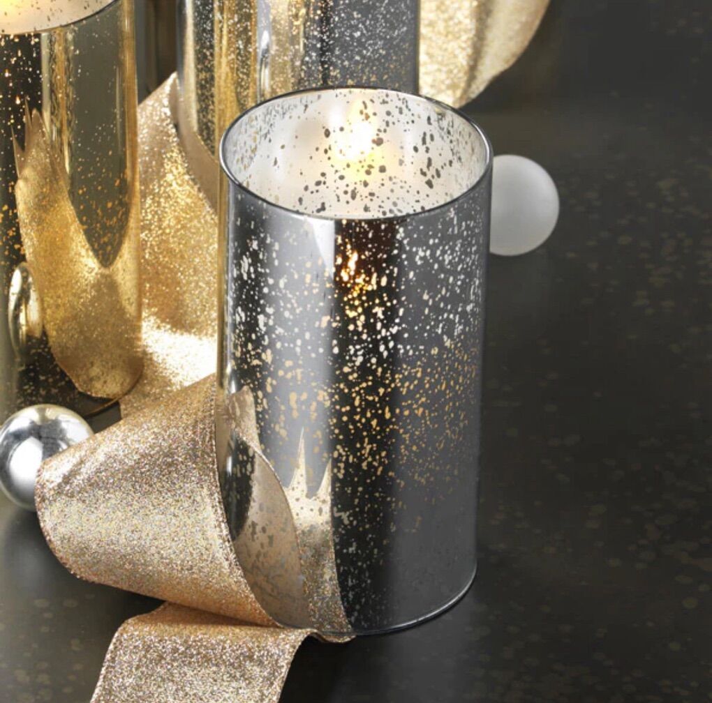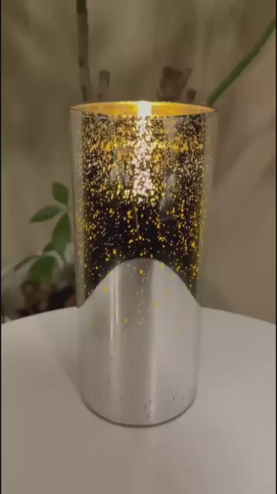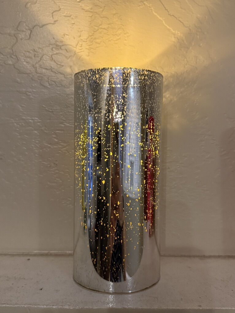 Silver Mercury Glass 3.5 x 8 With Moving Flame Pillar Candle Available: More than 10 pieces