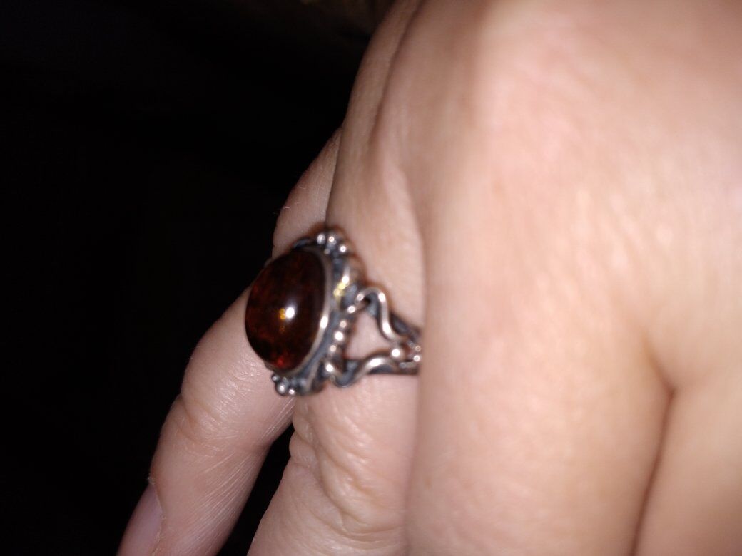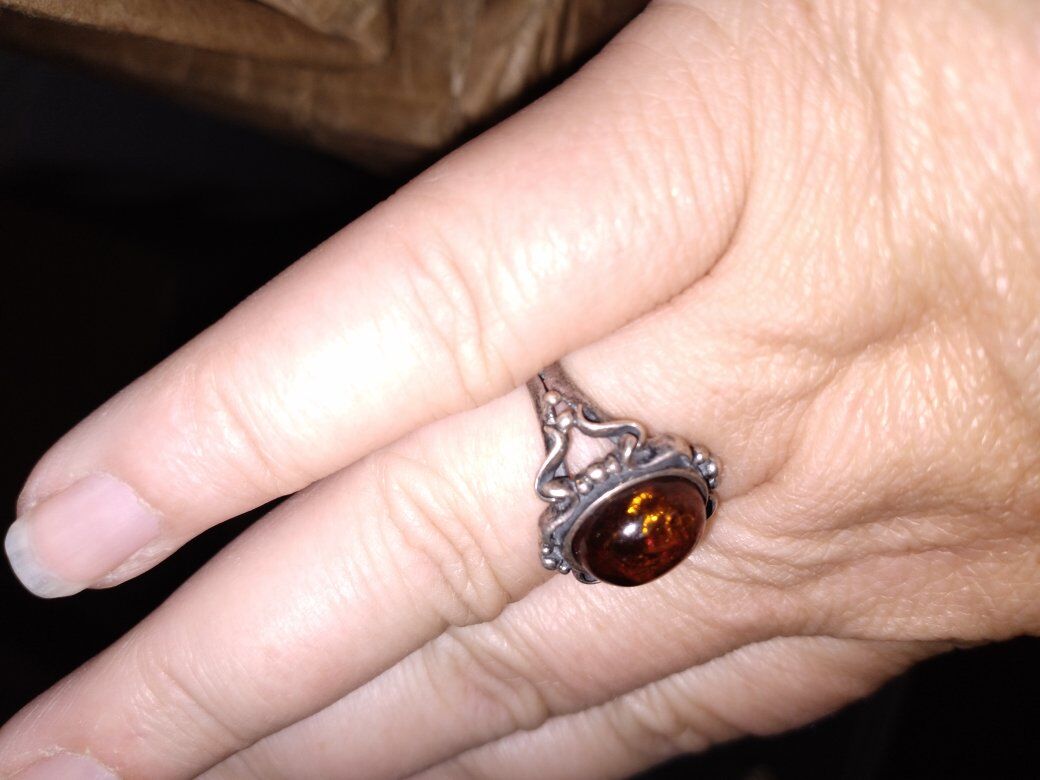 Sterling Silver stamped 925 M Amber stone Ring in Antique look yes it is real 925 size 6.5 it's a really pretty ring in good wearable pre-owned condition.